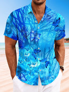 Alohadaddy Summer Butterfly Plant Ocean Pocket Button Vacation Men's Polyester Short Sleeve Shirt