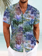 Alohadaddy Summer Plant Tree Men Button Pocket Casual Short Sleeve Shirt