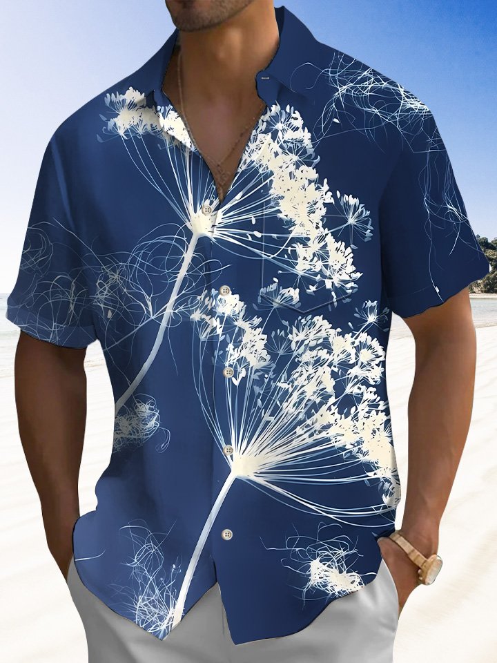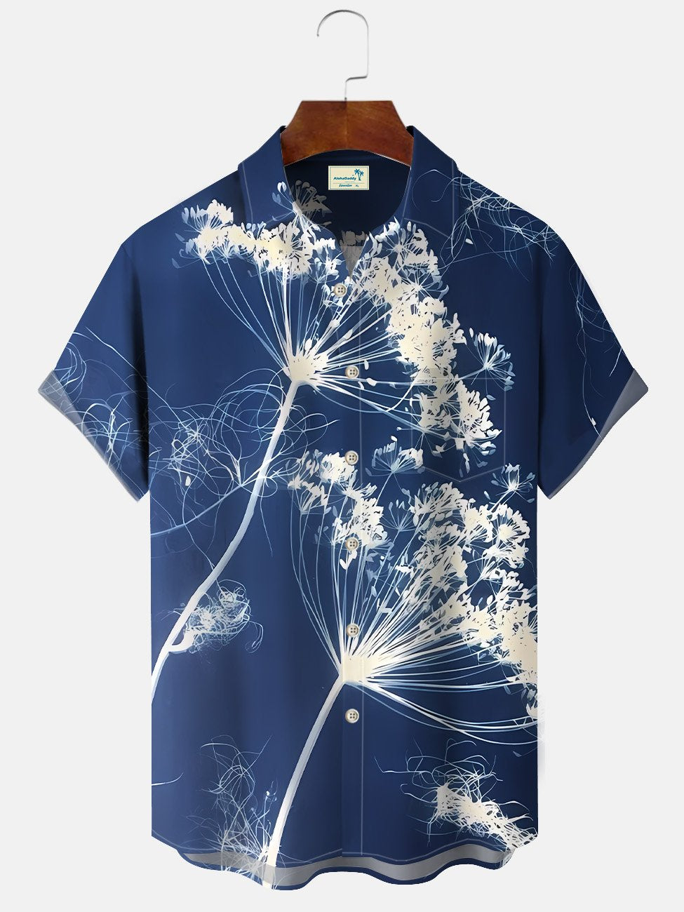 Alohadaddy Summer Plants Dandelion Pocket Buttons Leisure Vacation Men's Short Sleeve Shirt