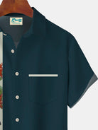 Alohadaddy Frog Casual Bowling Shirt with Glasses Print Men's Oversized Shirt with Pockets