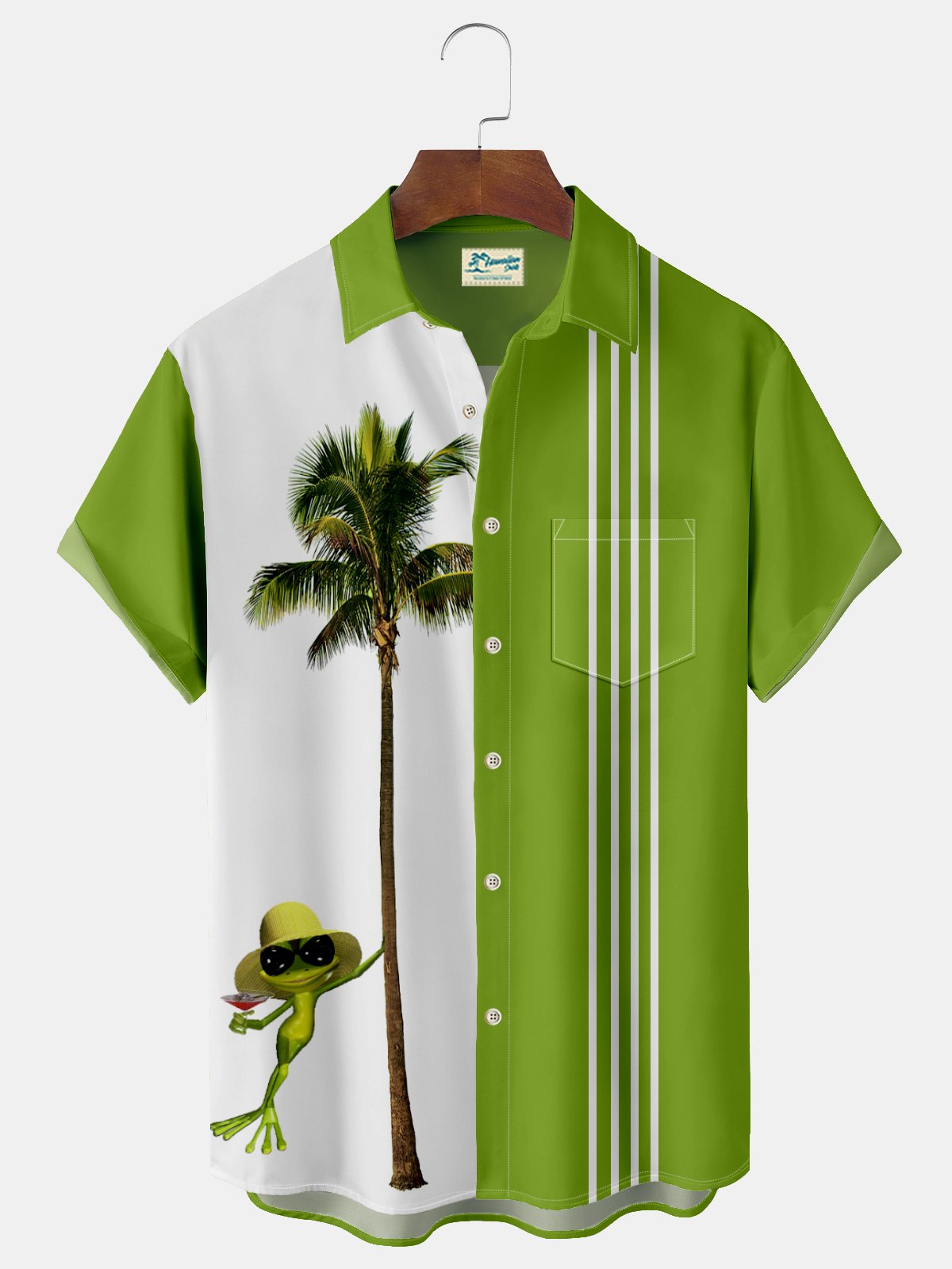 Alohadaddy Frog Print Men's Hawaiian Shirt Stretch Plus Size Aloha Camp Pocket Button-Down Shirt