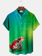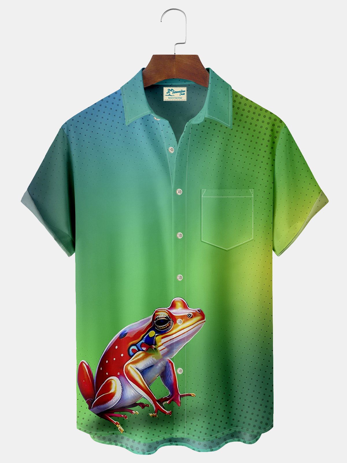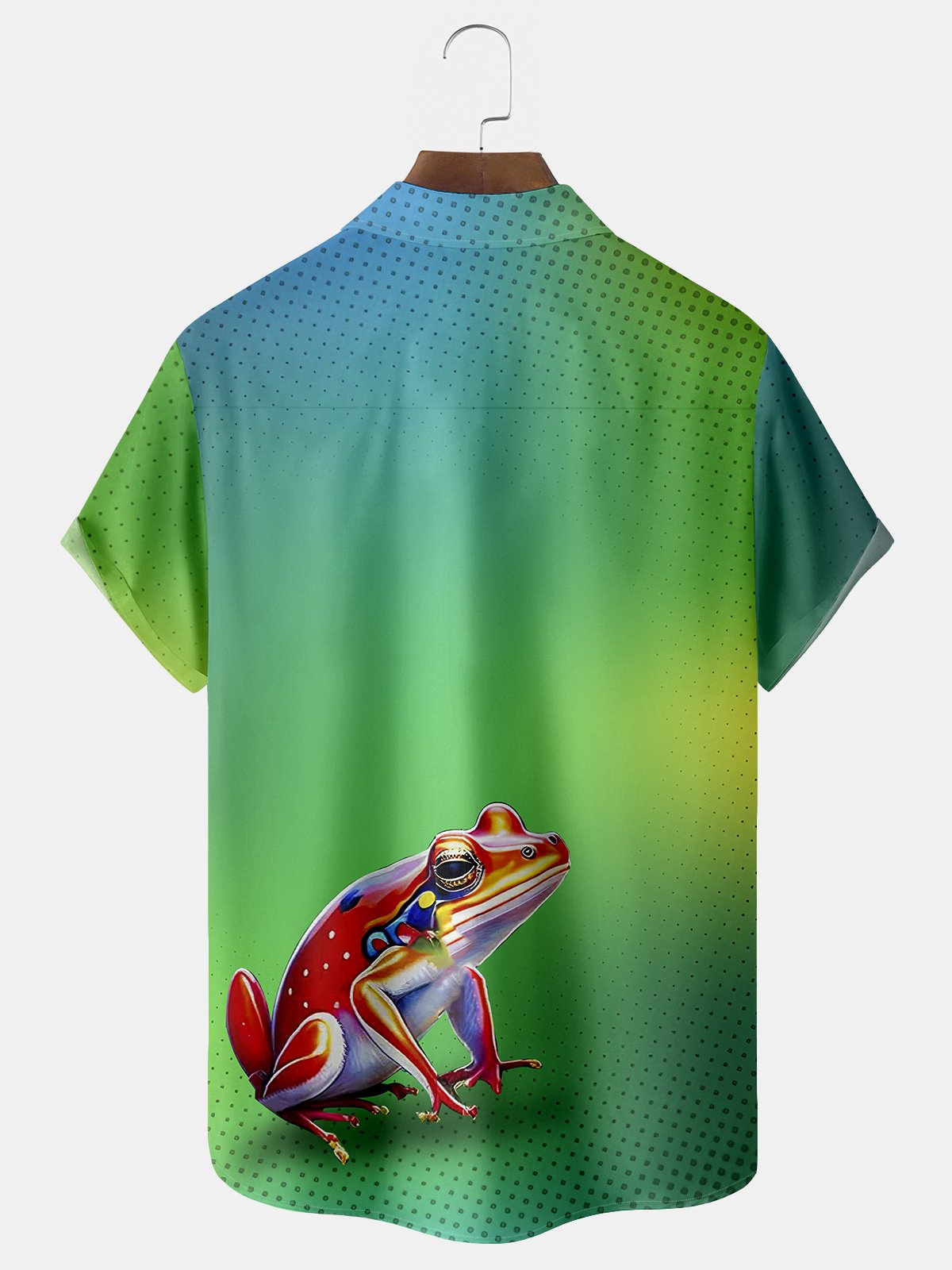 Alohadaddy Gradient Polka Dot Frog Print Men's Hawaiian Oversized Shirt with Pockets