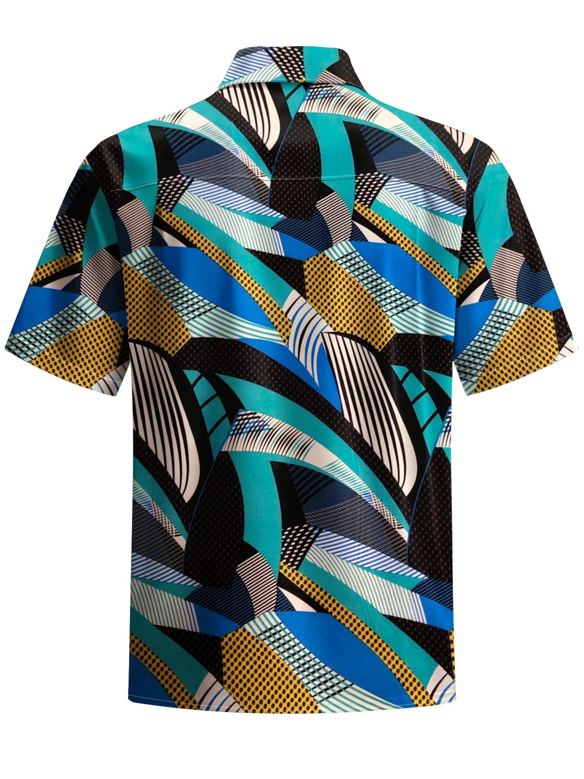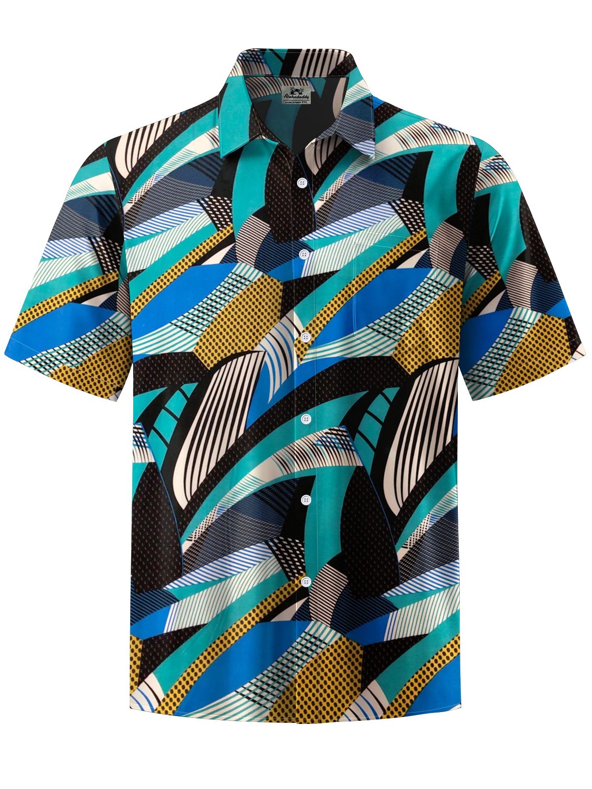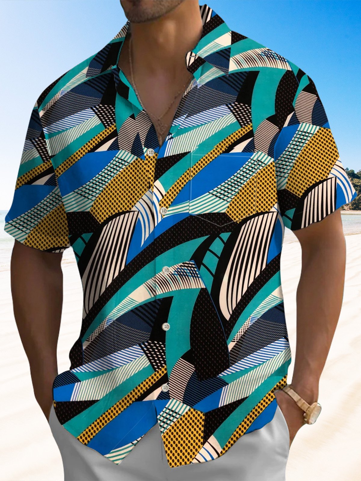 Alohadaddy® Casual Geometric Art Print Chest Pocket Men's Short Sleeve Shirt Big & Tall