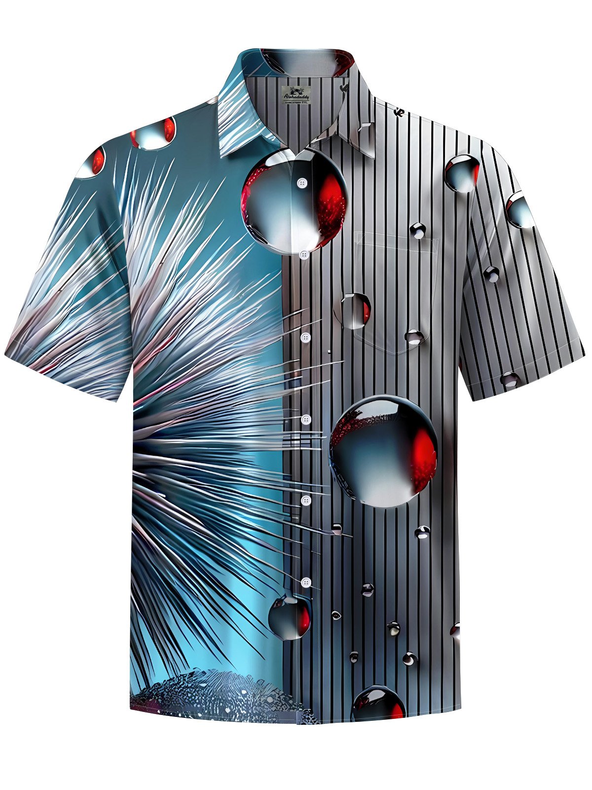 Alohadaddy® Casual Geometric Stripes Art Print Chest Pocket Moisture Wicking Mens Short Sleeve Shirt Big & Tall