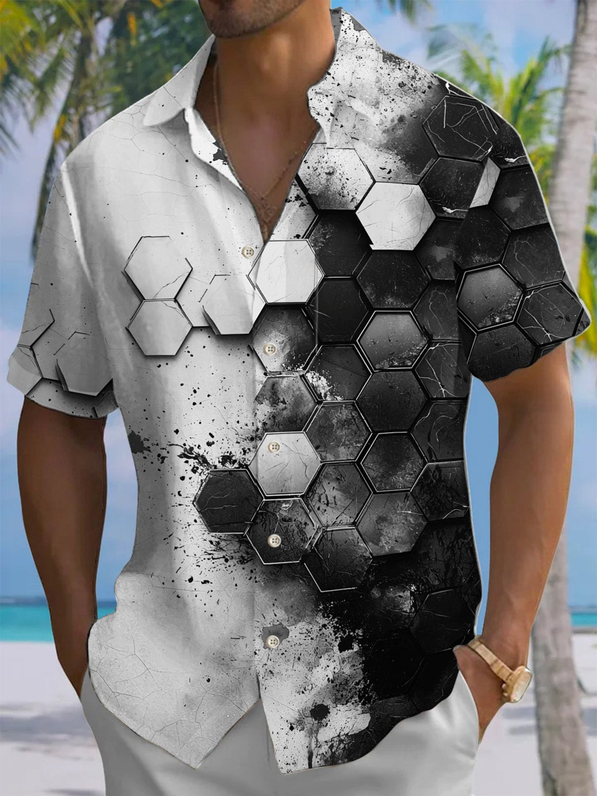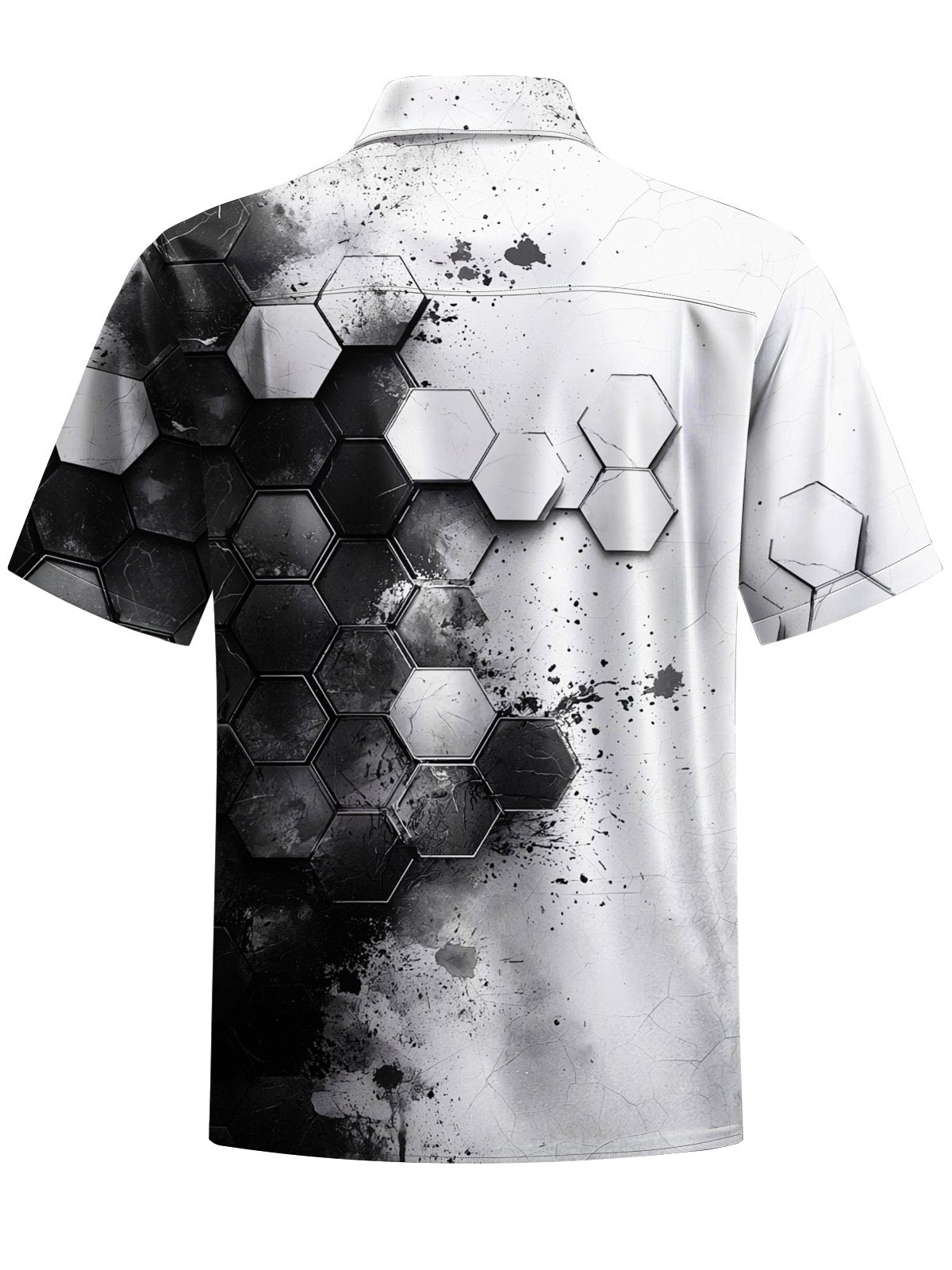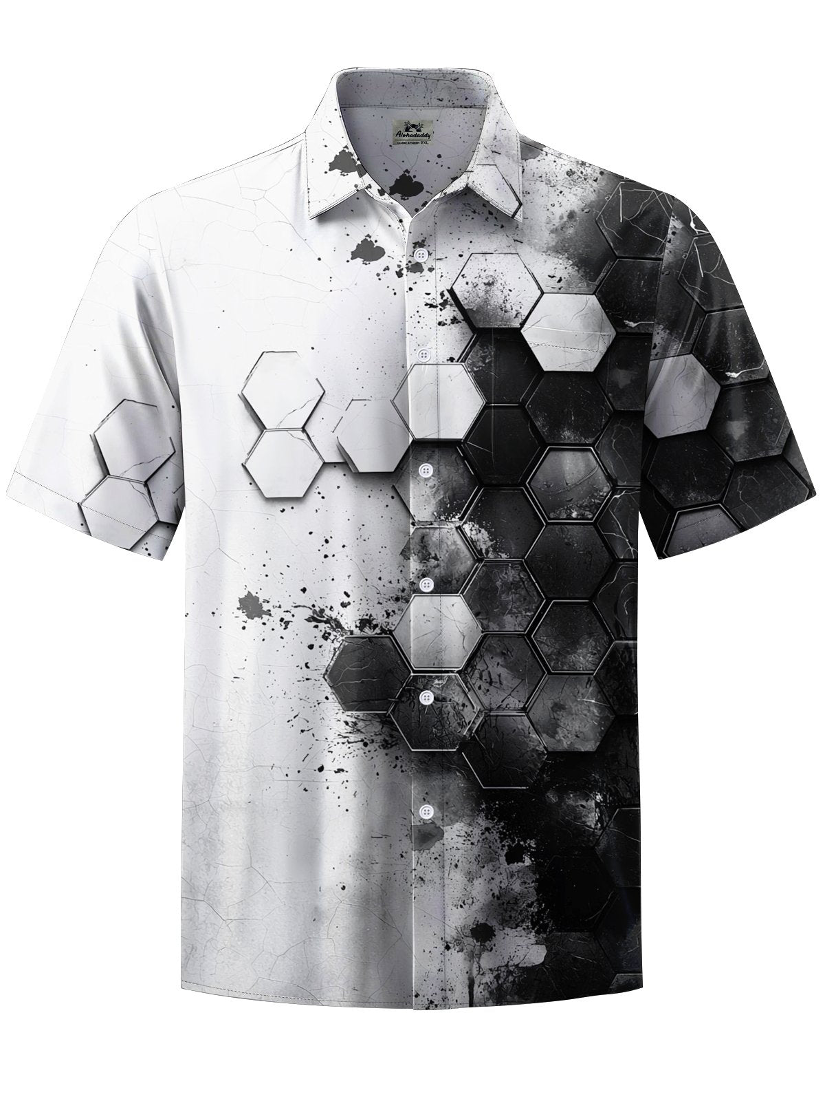 Alohadaddy® Men's Casual Geometric Ombre Print Moisture-Wicking Chest Pocket Short Sleeve Shirt Big & Tall