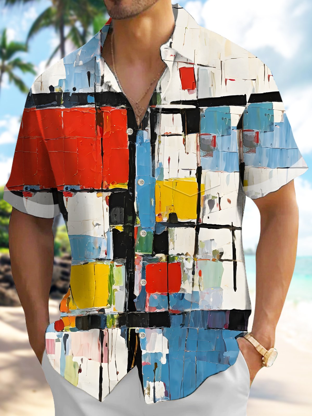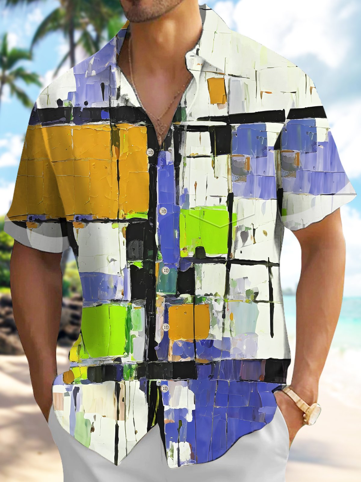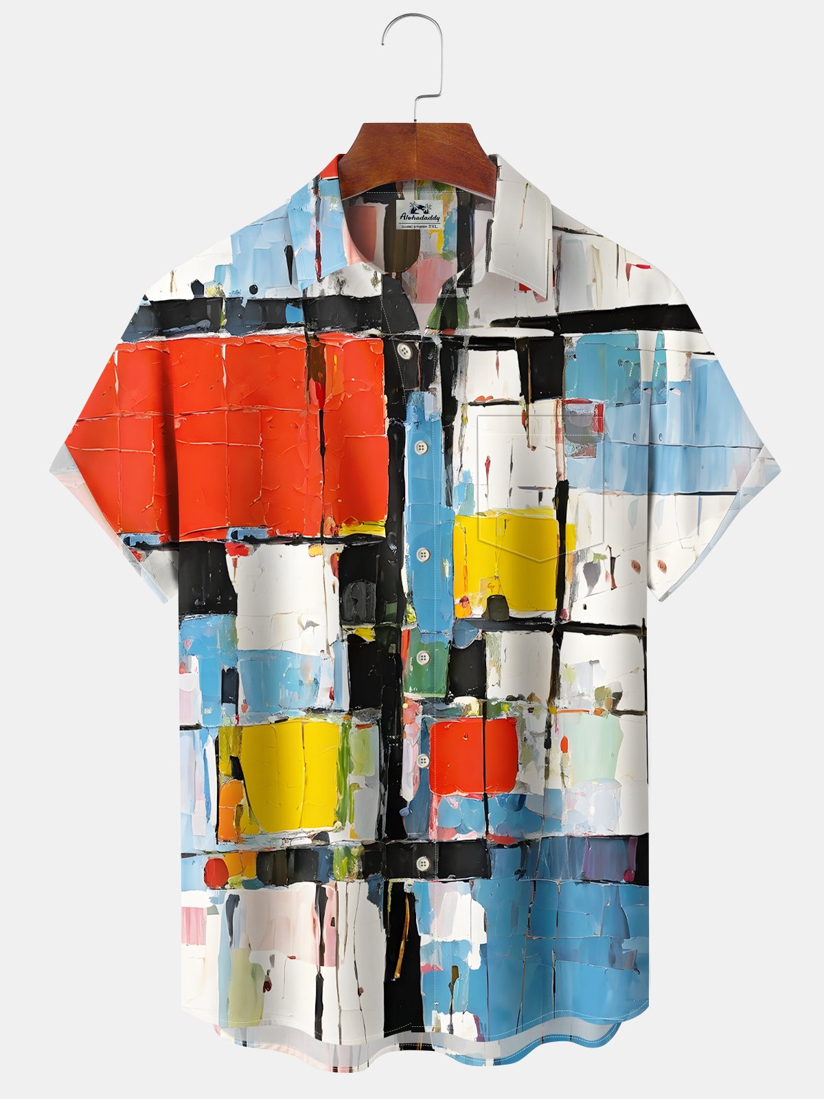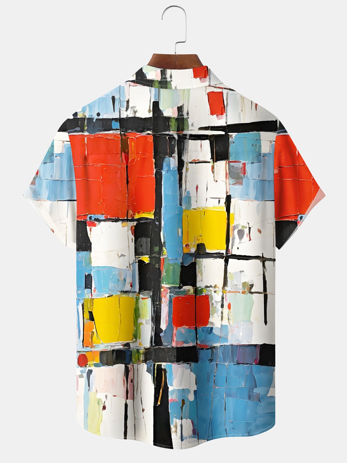 Alohadaddy® Men's Geometric Color Block Button Up 3D Print Pocket Vacation Holiday Shirt