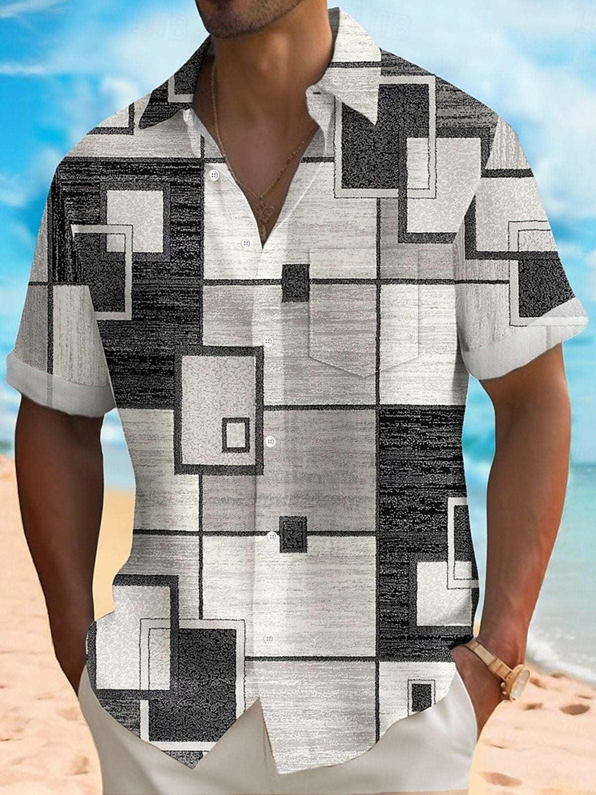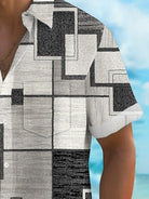 Alohadaddy® Retro Geometric Graphic Color Block Print Men's Button Pocket Short Sleeve Shirt