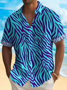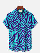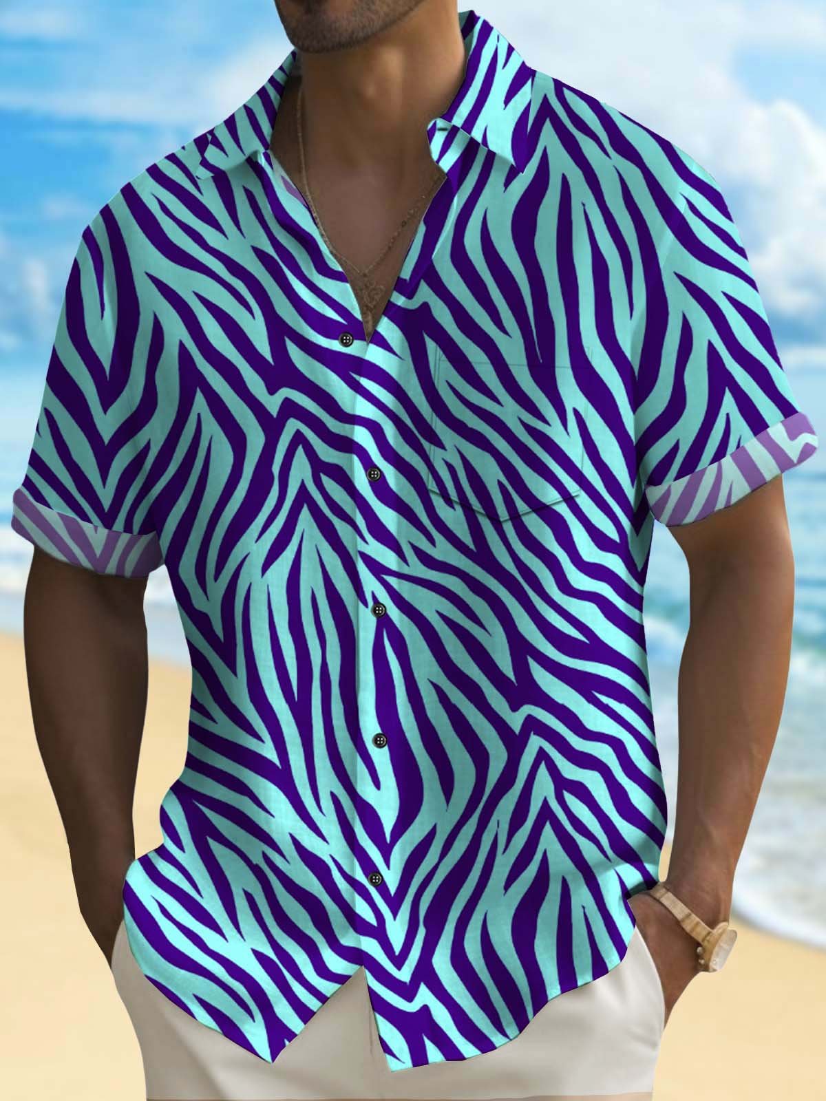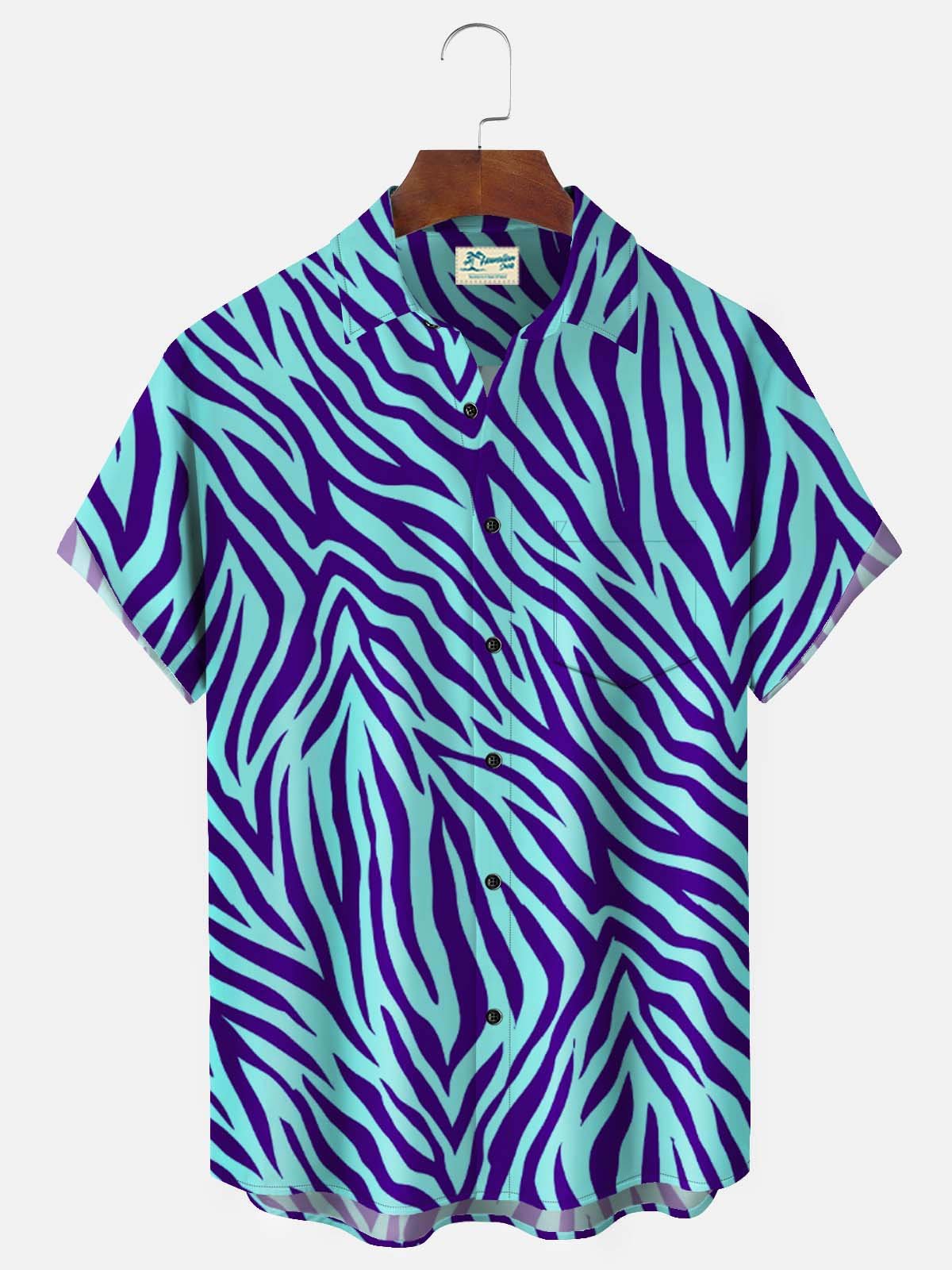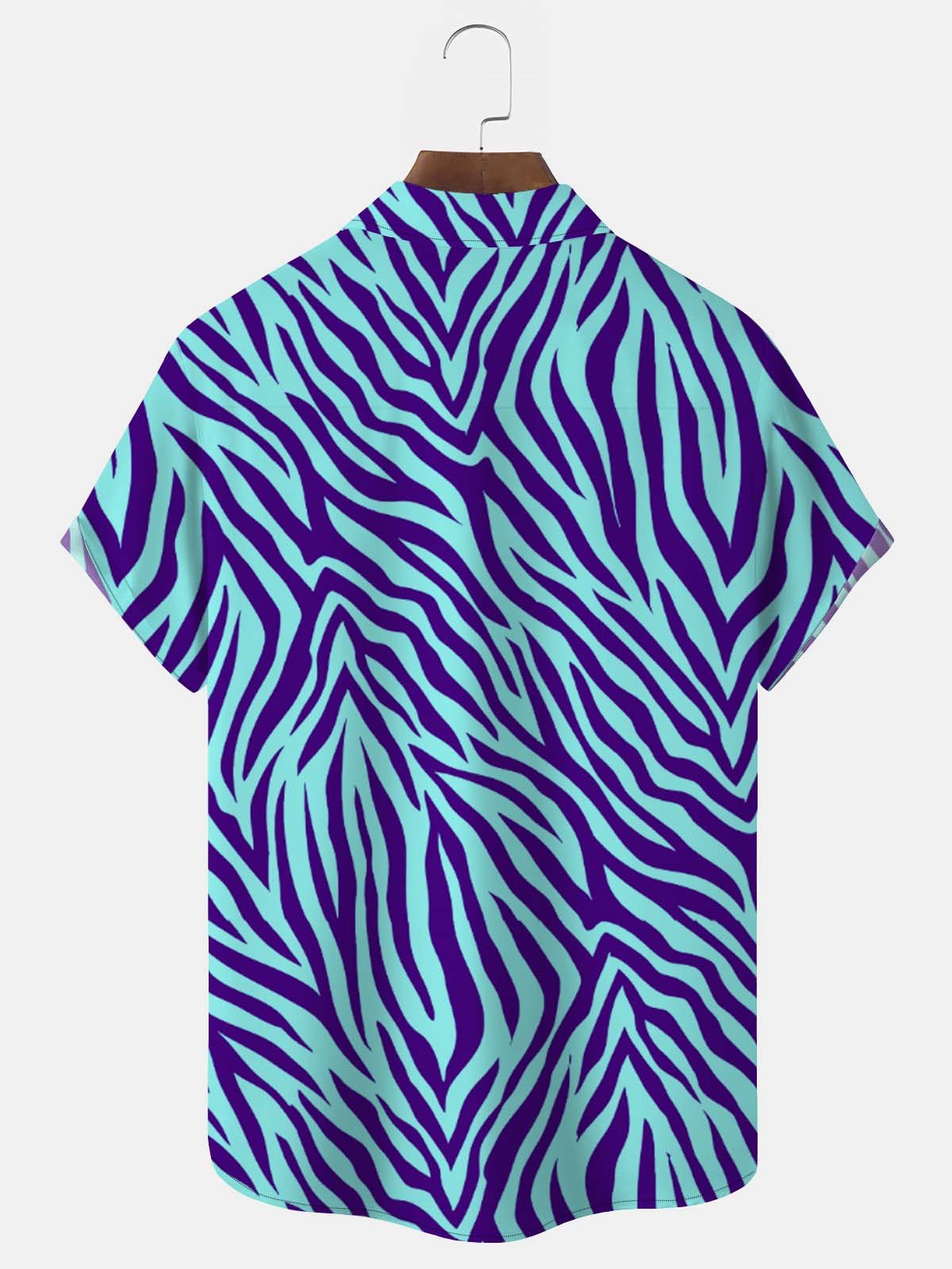 Alohadaddy 50’s Retro Animal Texture Blue Men's Casual Shirts Geometric Art Stretch Plus Size Aloha Camp Pocket Shirts