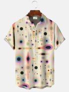 Alohadaddy Fluorescent 3D Geometric Pattern Button Pocket Casual Short Sleeve Shirt