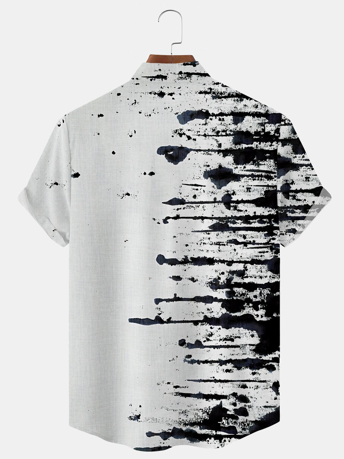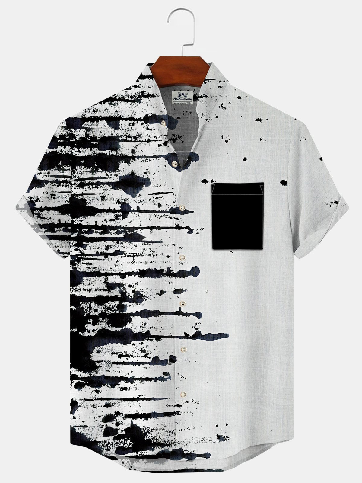 Alohadaddy Geometric Button Pocket Casual Short Sleeve Stand Collar Shirt