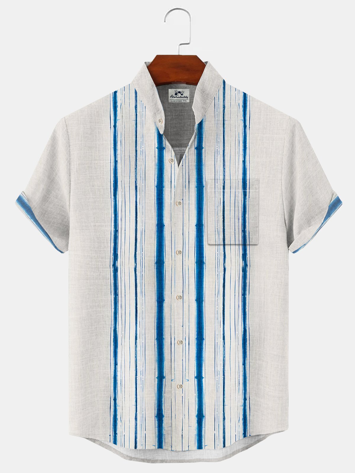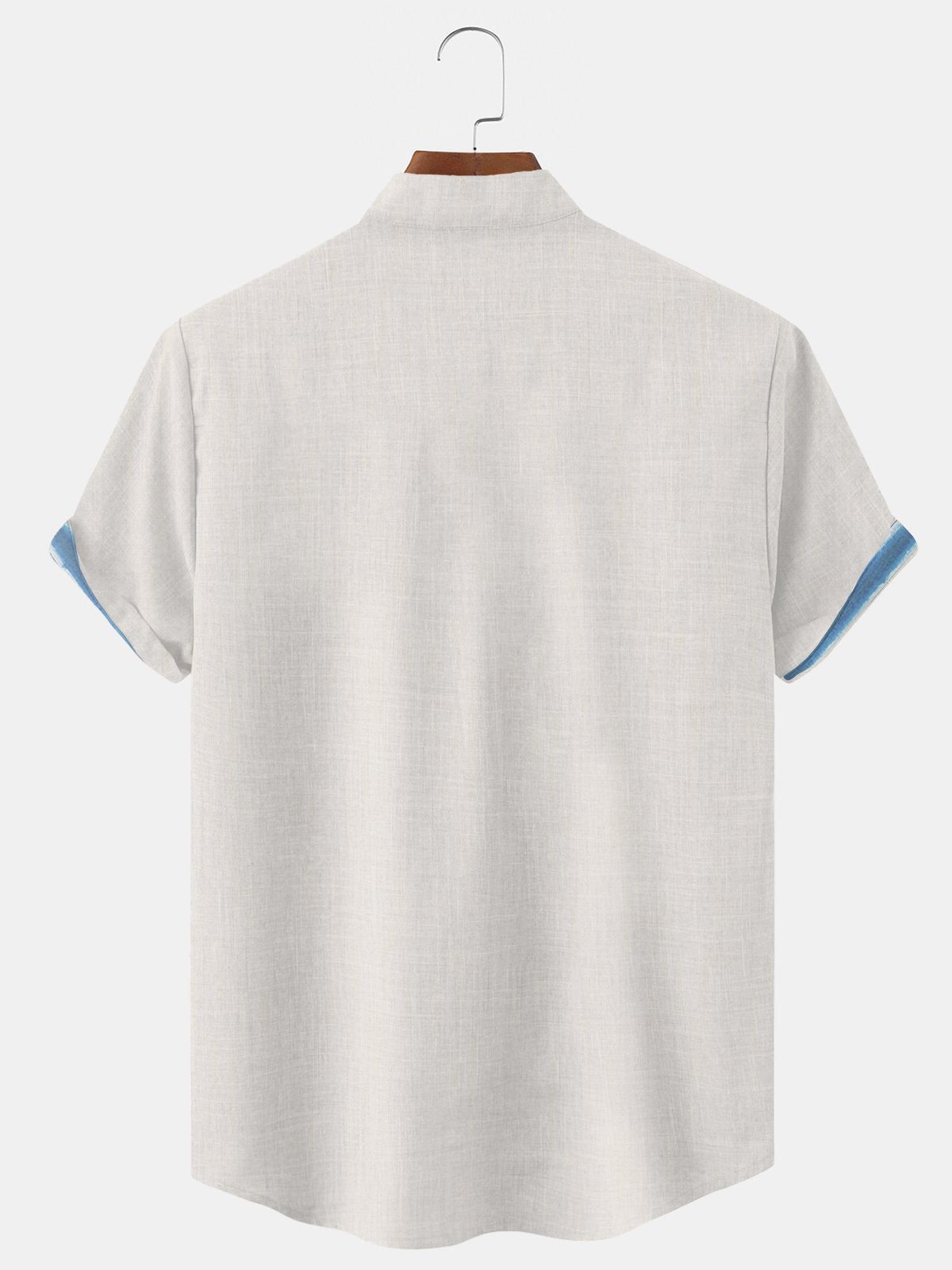 Alohadaddy Geometric Button Pocket Casual Short Sleeve Stand Collar Shirt