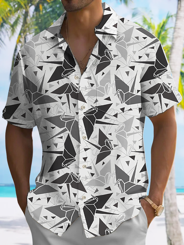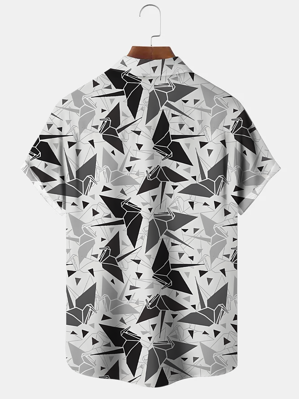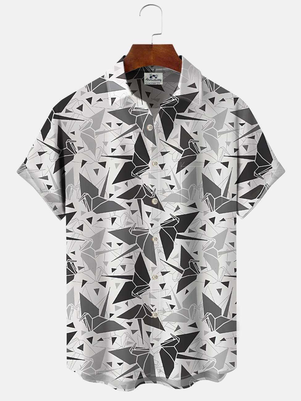 Alohadaddy Geometric Pattern Button Pocket Casual Short Sleeve Shirt