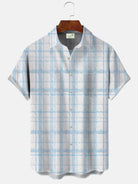 Alohadaddy Plaid Geometric Pattern Mens Pocket Button Casual Short Sleeve Shirt