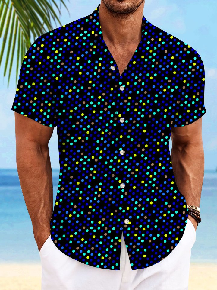 Alohadaddy Polka Dot Fluorescent Pocket Casual Vacation Short Sleeve Shirt