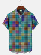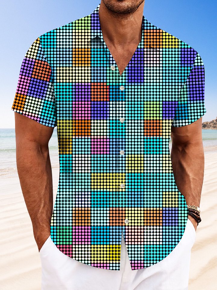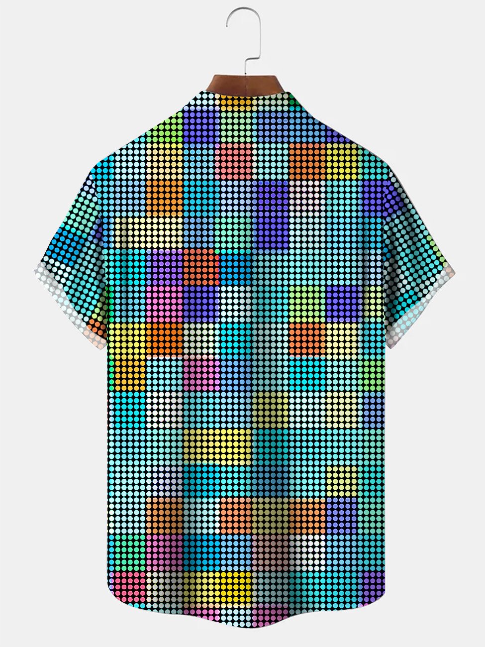 Alohadaddy Polka Dot Geometric Pattern Contrast Color Men's Pocket Button Casual Short Sleeve Shirt