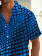 Alohadaddy Retro Geometric Gradient 3D Digital Print Men's Button Pocket Short Sleeve Shirt Big & Tall