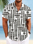 Alohadaddy Retro Geometric Pattern Button Pocket Casual Short Sleeve Shirt
