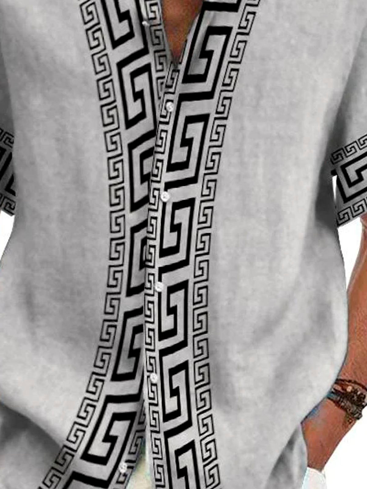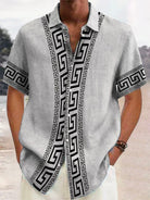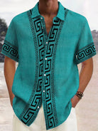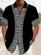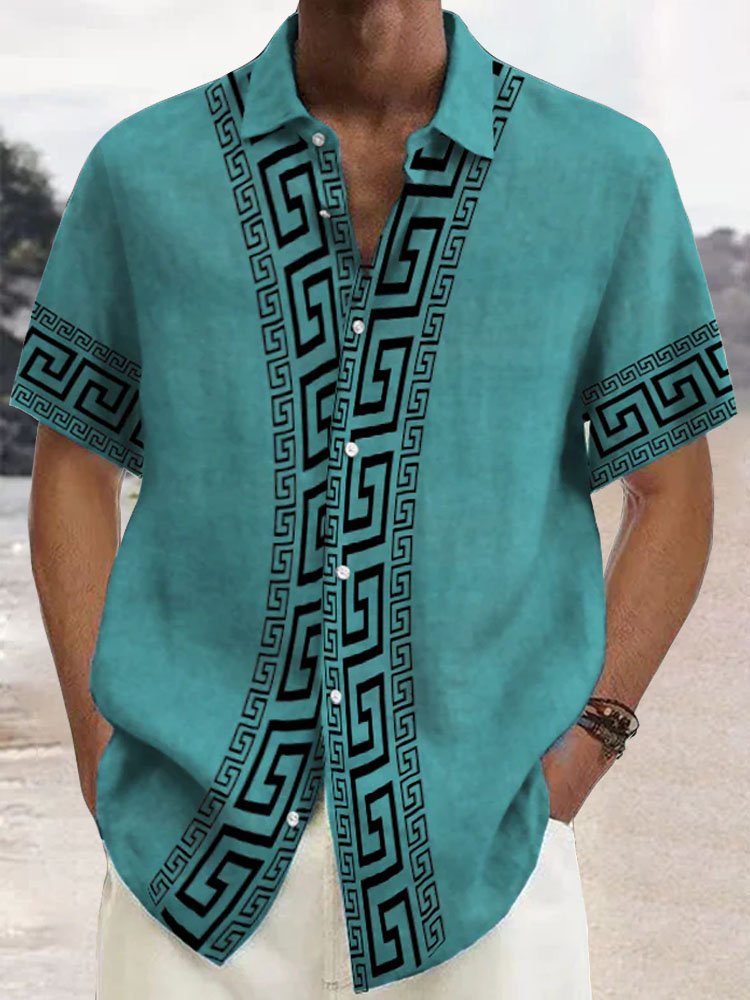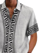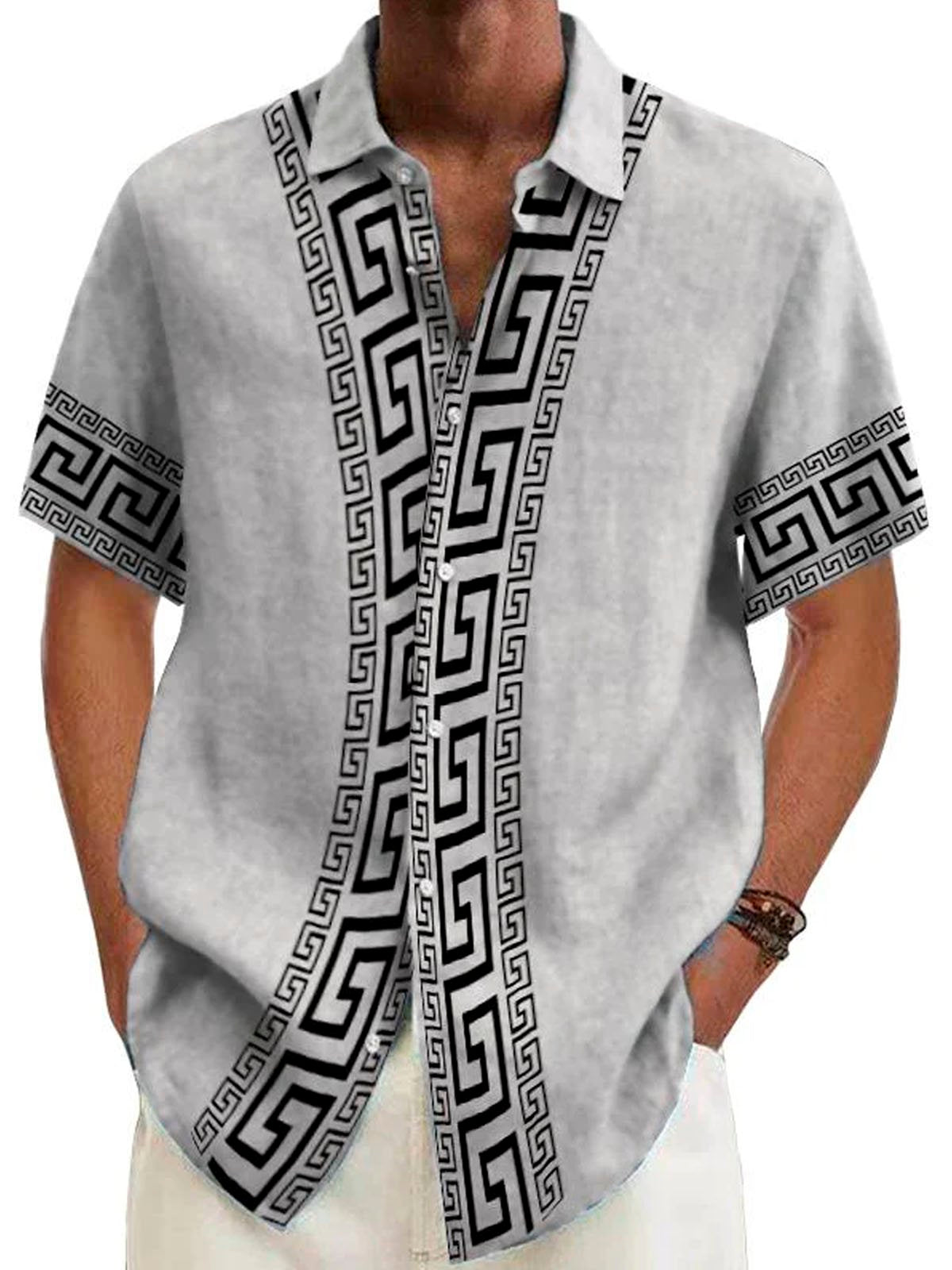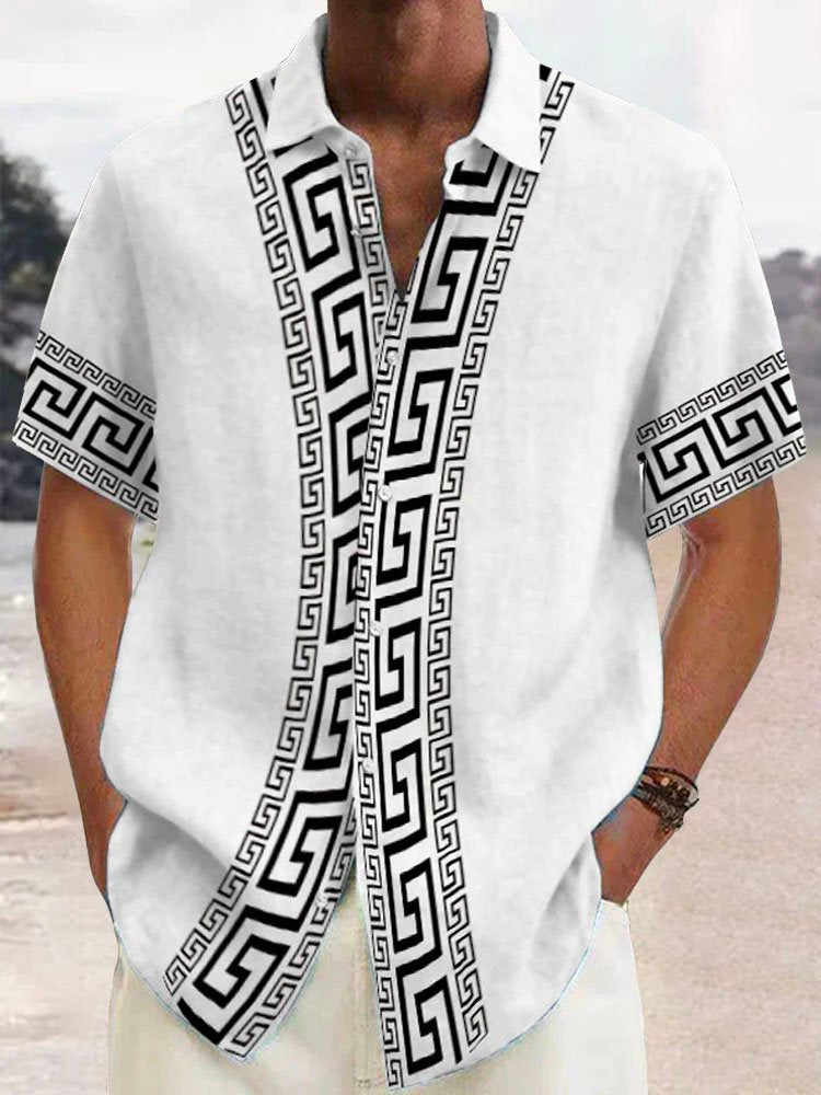 Alohadaddy Retro Geometric Print Men's Button Pocket Short Sleeve Shirt