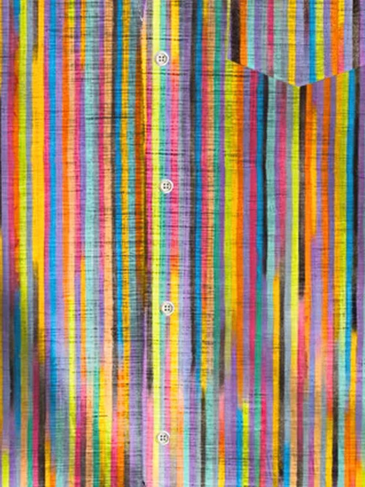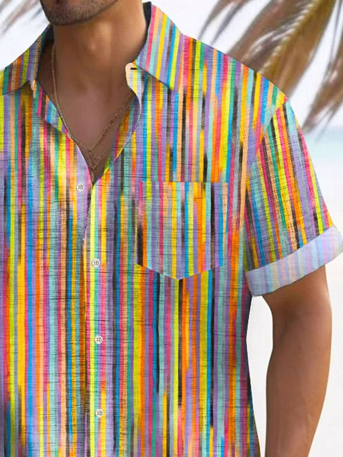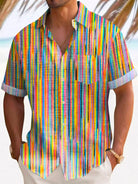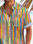 Alohadaddy Retro Gradient Stripes 3D Digital Print Men's Button Pocket Short Sleeve Shirt Big & Tall