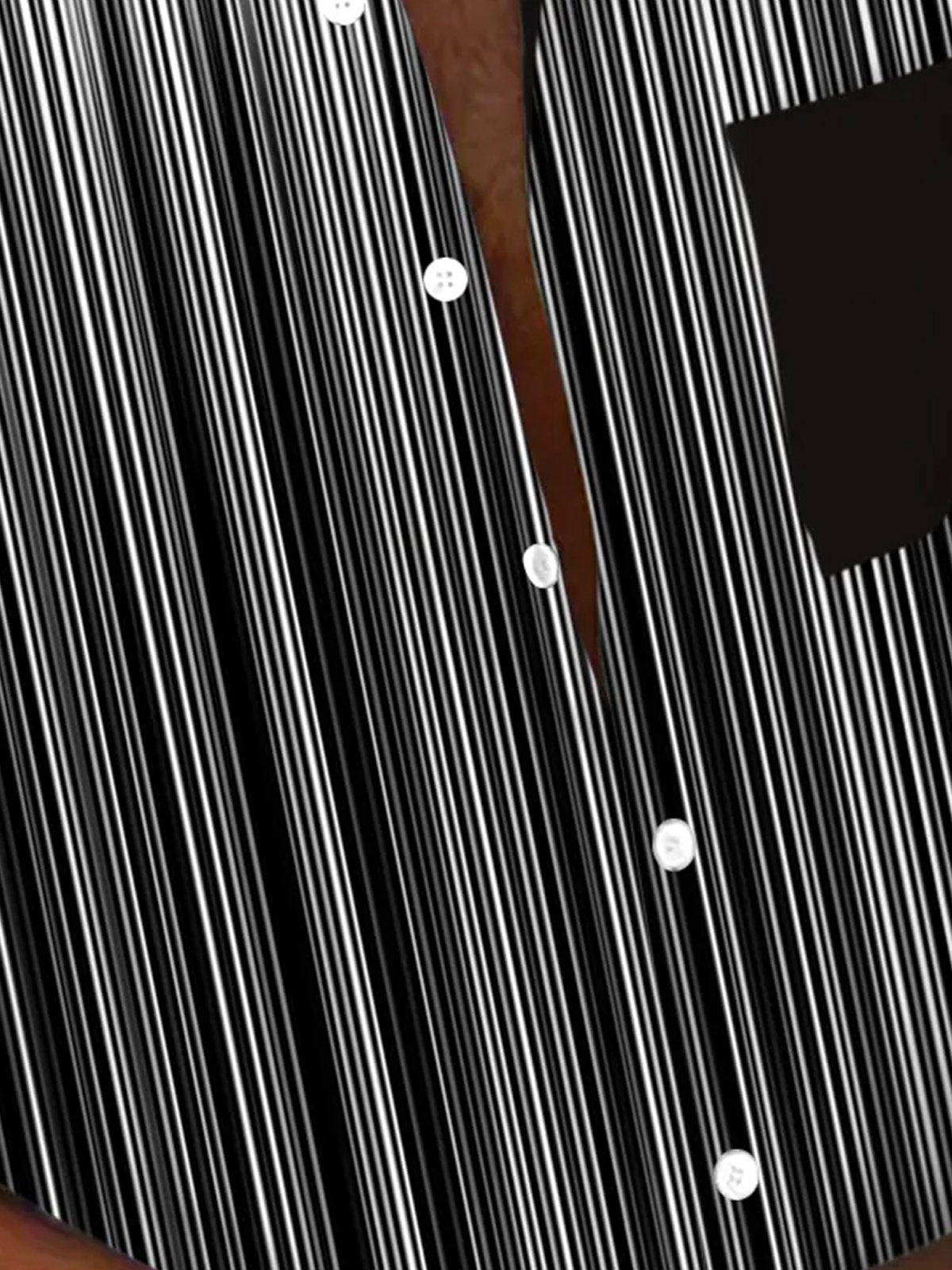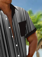 Alohadaddy Retro Striped Gradient Print Men's Button Pocket Short Sleeve Shirt