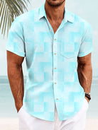 Alohadaddy Summer 3D Geometric Pattern Men's Button Pocket Polyester Short Sleeve Shirt
