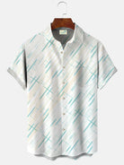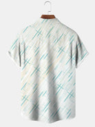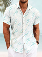 Alohadaddy Summer Geometric Stripes Cross Men Button Pocket Casual Short Sleeve Shirt