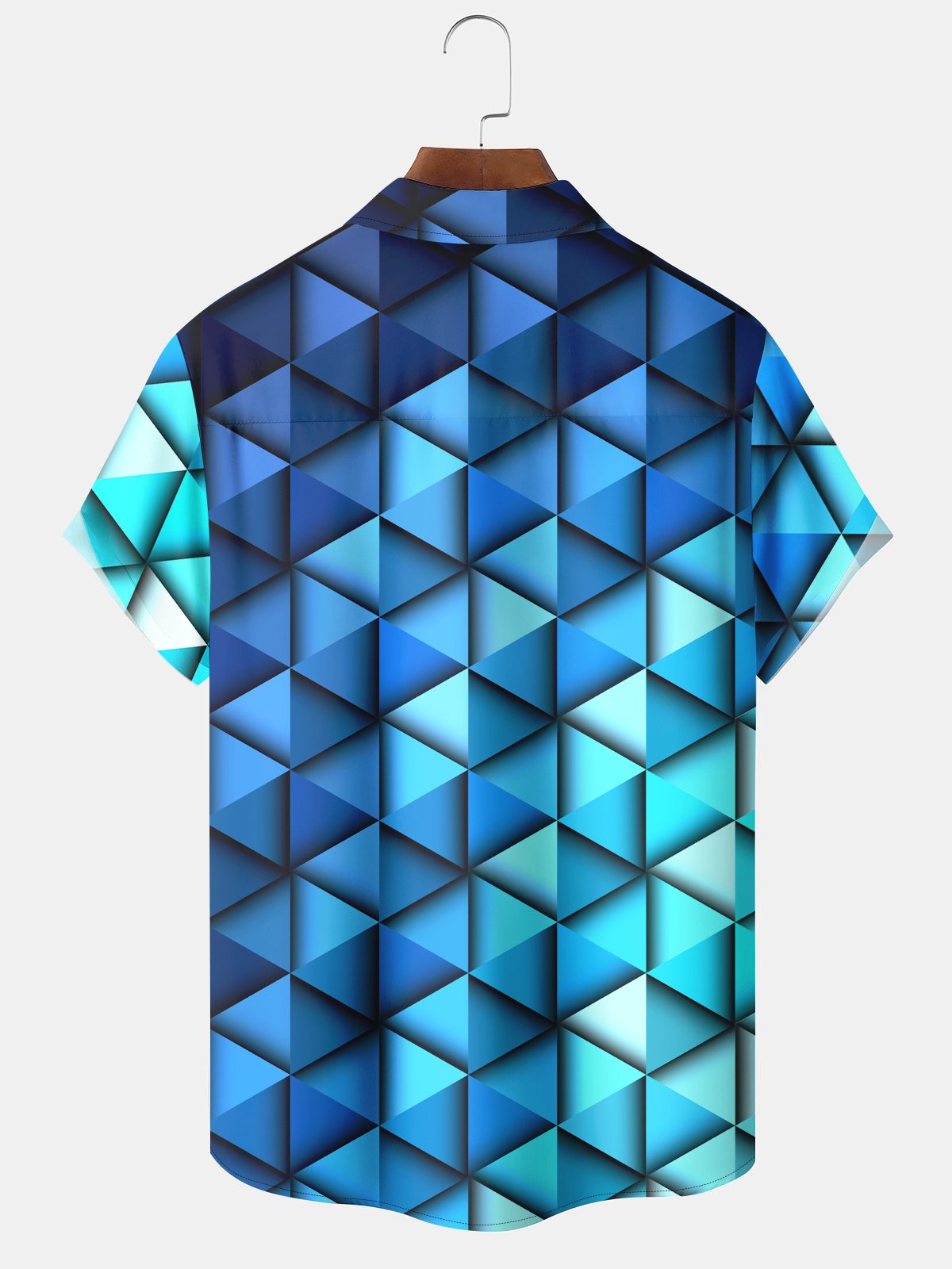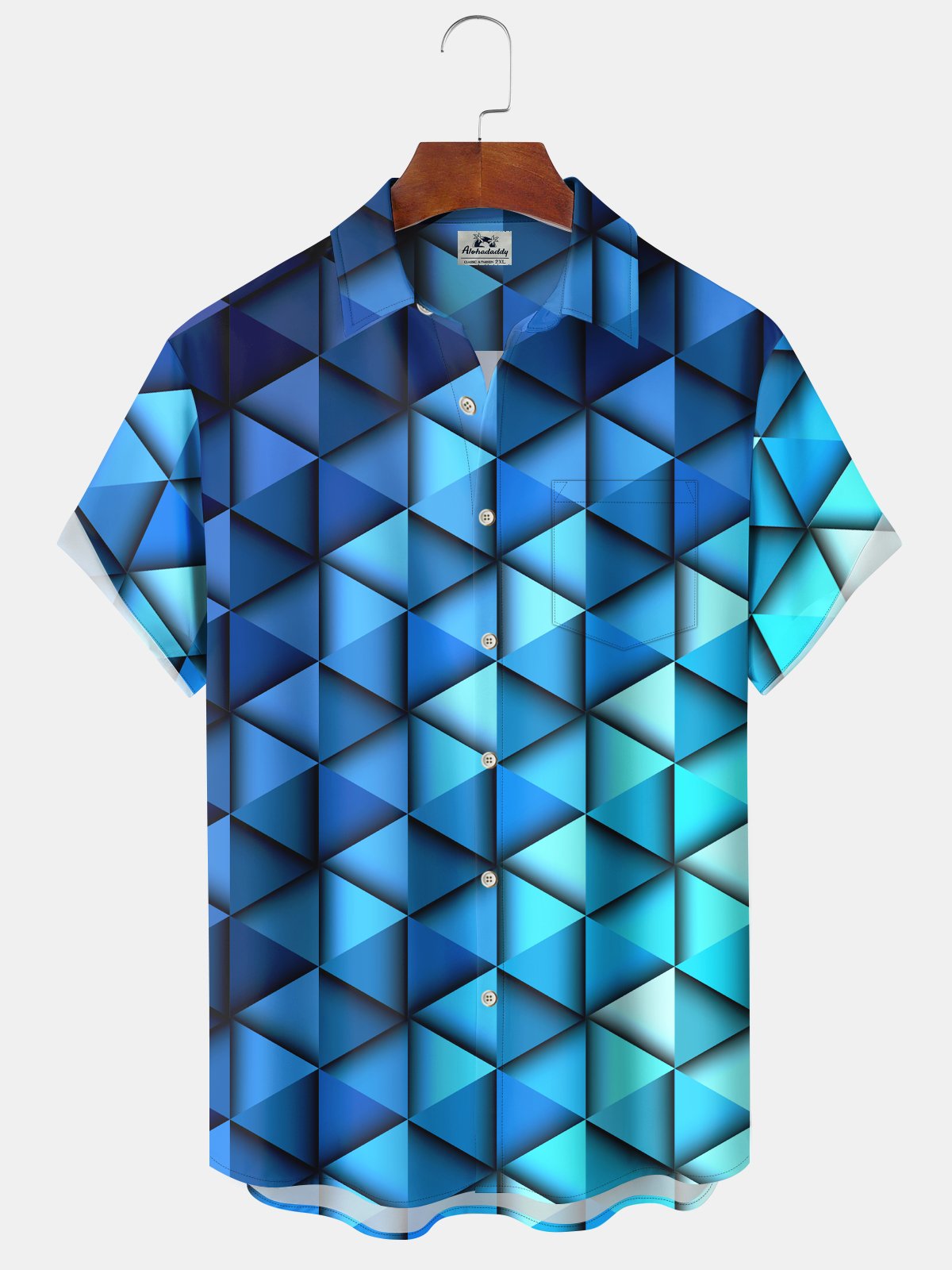 Alohadaddy Vintage Art 3D Gradient Geometric Stretch Hawaiian Shirt