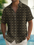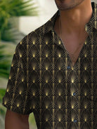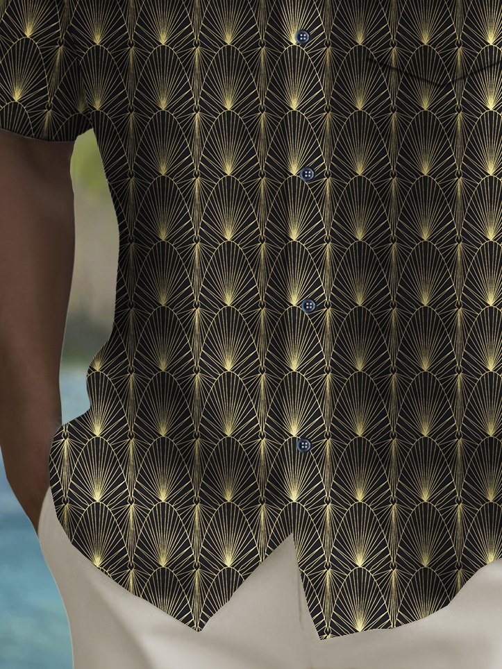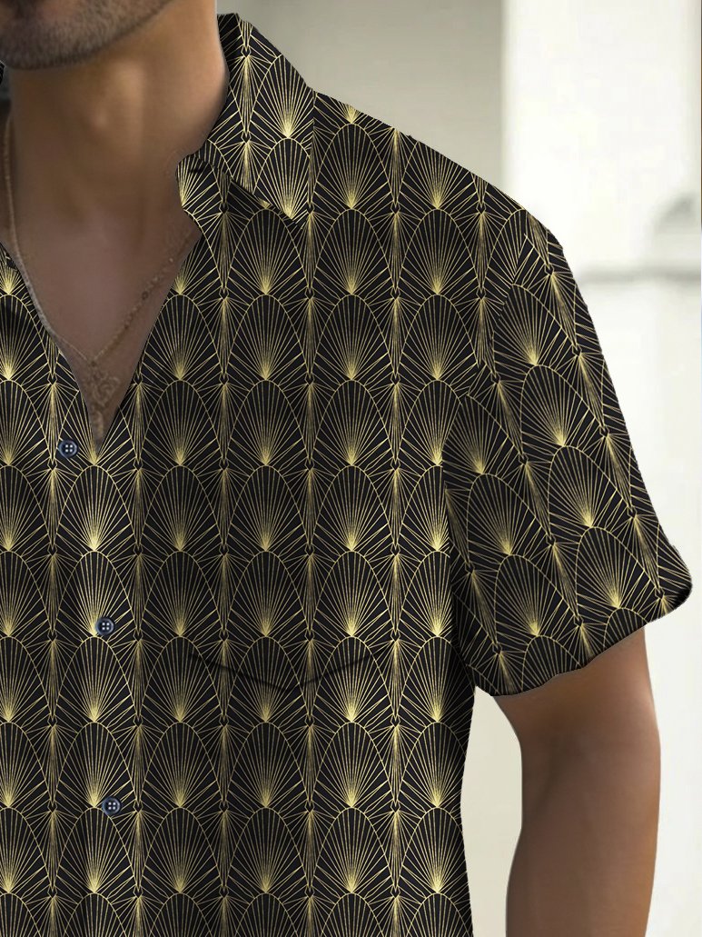 Alohadaddy Vintage Black Gold Geometric Line Print Chest Pocket Men's High Shirt Big Tall