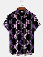 Alohadaddy Vintage Geometric Print Men's Chest Pocket Stretch Hawaiian Shirt