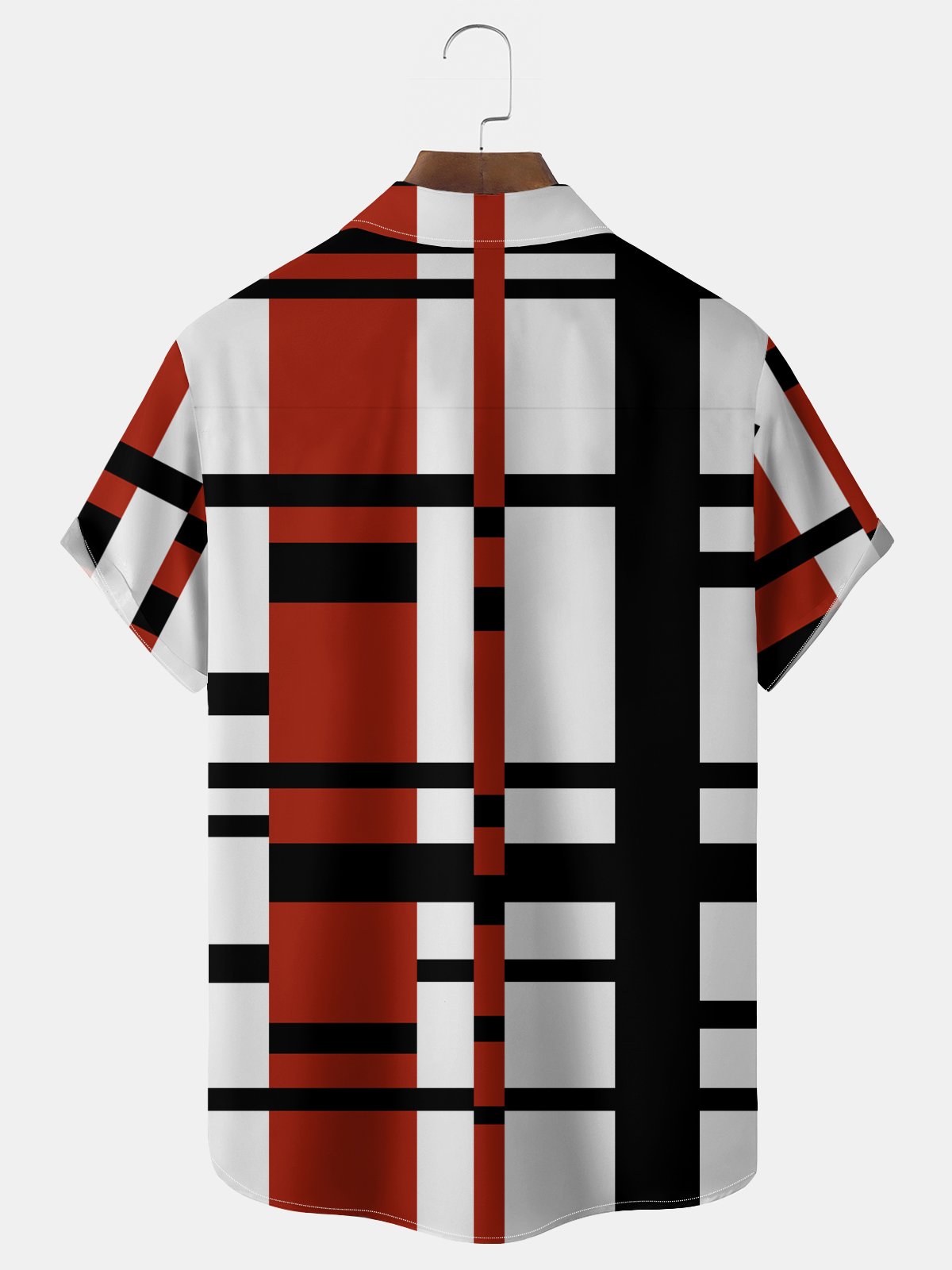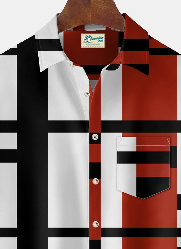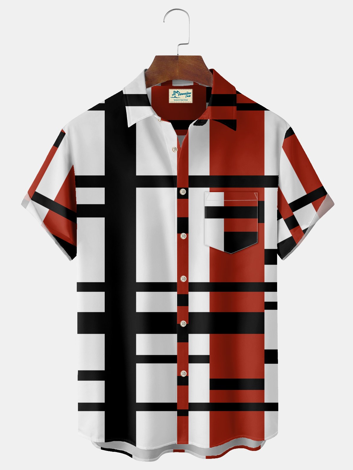 Alohadaddy Vintage Geometric Stripe Print Chest Pocket Men's High Shirt Big Tall