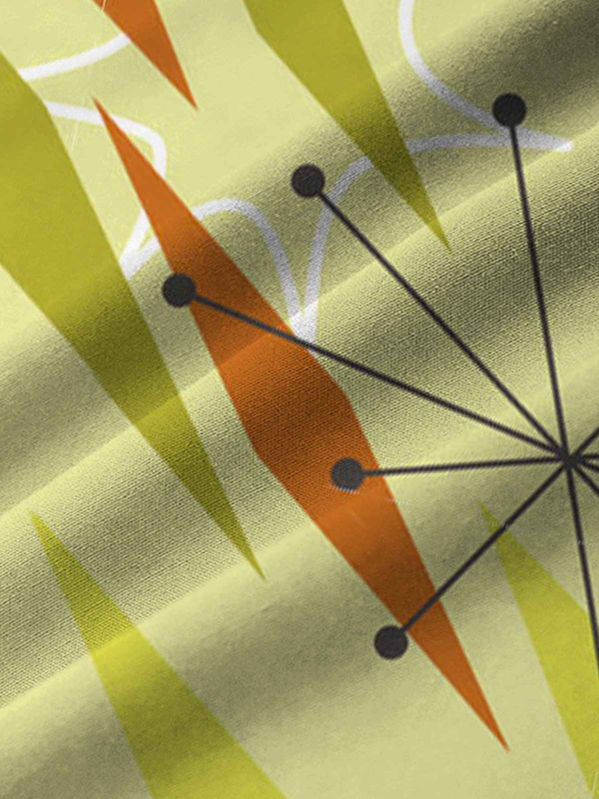 Alohadaddy Vintage Medieval Geometric Men's Casual Shirt Art Pocket Button Camp Shirt Big Tall