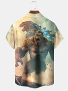 Alohadaddy Casual Everyday King Kong Godzilla Print Art Stretch Large Size Button Cardigan Polyester Short Sleeve Shirt