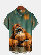 Alohadaddy Casual Retro Oil Painting Orangutan Ink Splash Print Art Button Cardigan Pocket Elasticity Long Large Size Short Sleeve Shirt