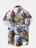 Alohadaddy Hawaii Bigfoot Print Art Buttons Stretch Large Size Men's Shirt