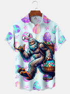 Alohadaddy Hawaii Easter Bigfoot Fun Print Art Buttons Stretch Large Size Men's Shirt