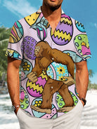 Alohadaddy Hawaii Resort Style Easter Walking Bigfoot Pocket Button Stretch Large Size Men's Shirt