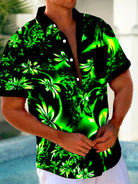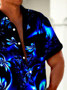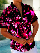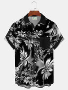Alohadaddy Hawaiian Floral 3D Print Men's Button Pocket Short Sleeve Shirt