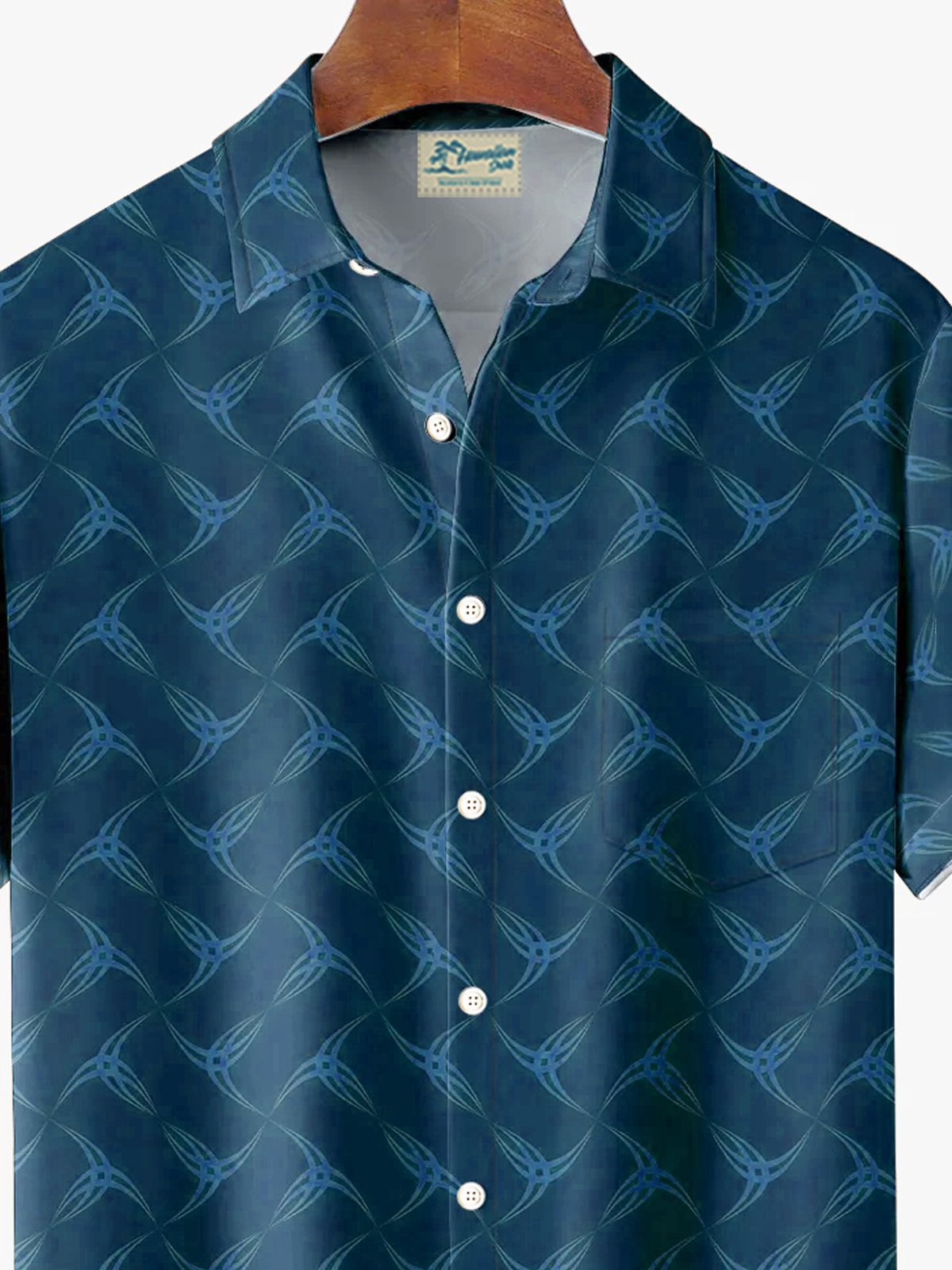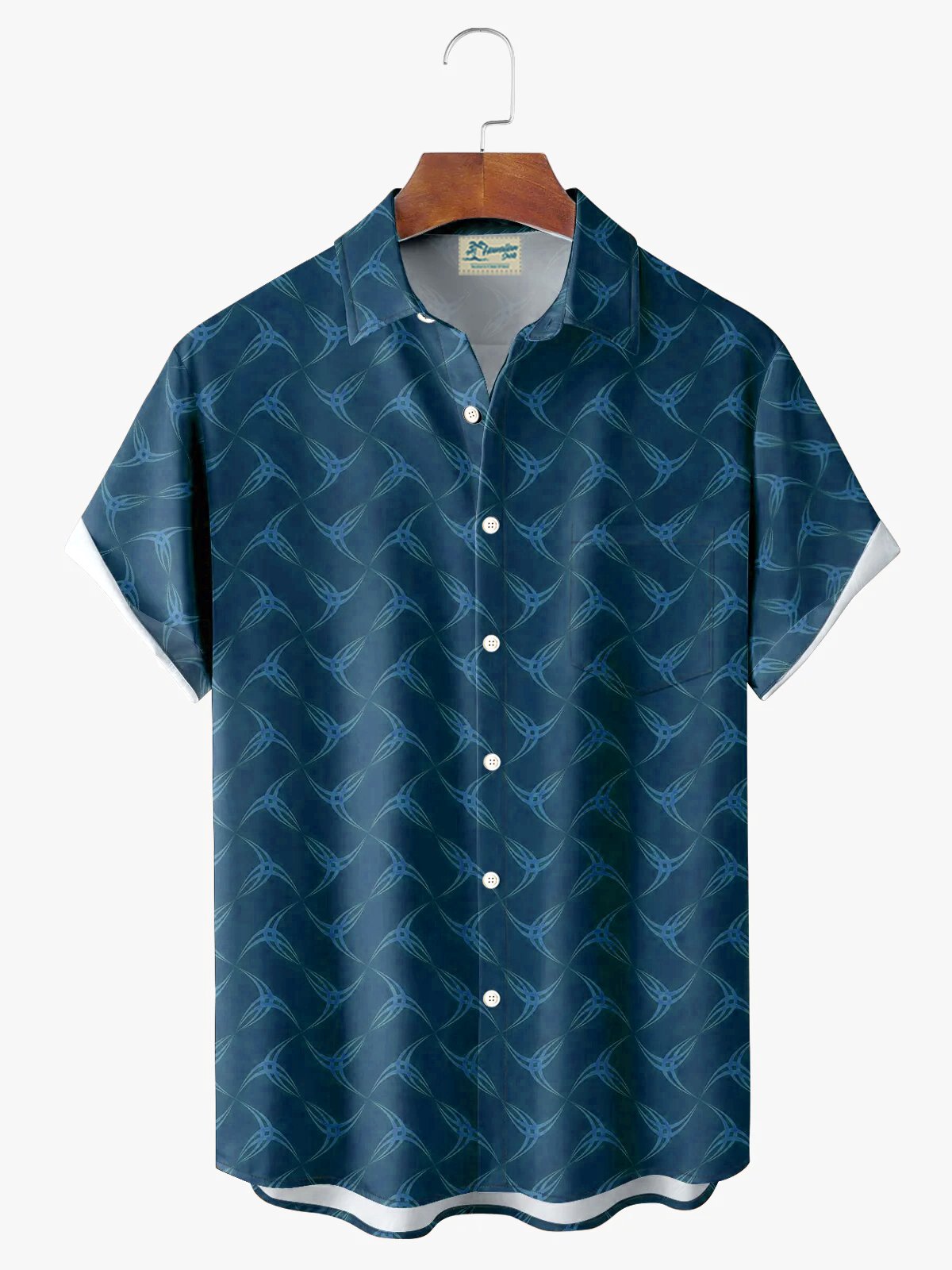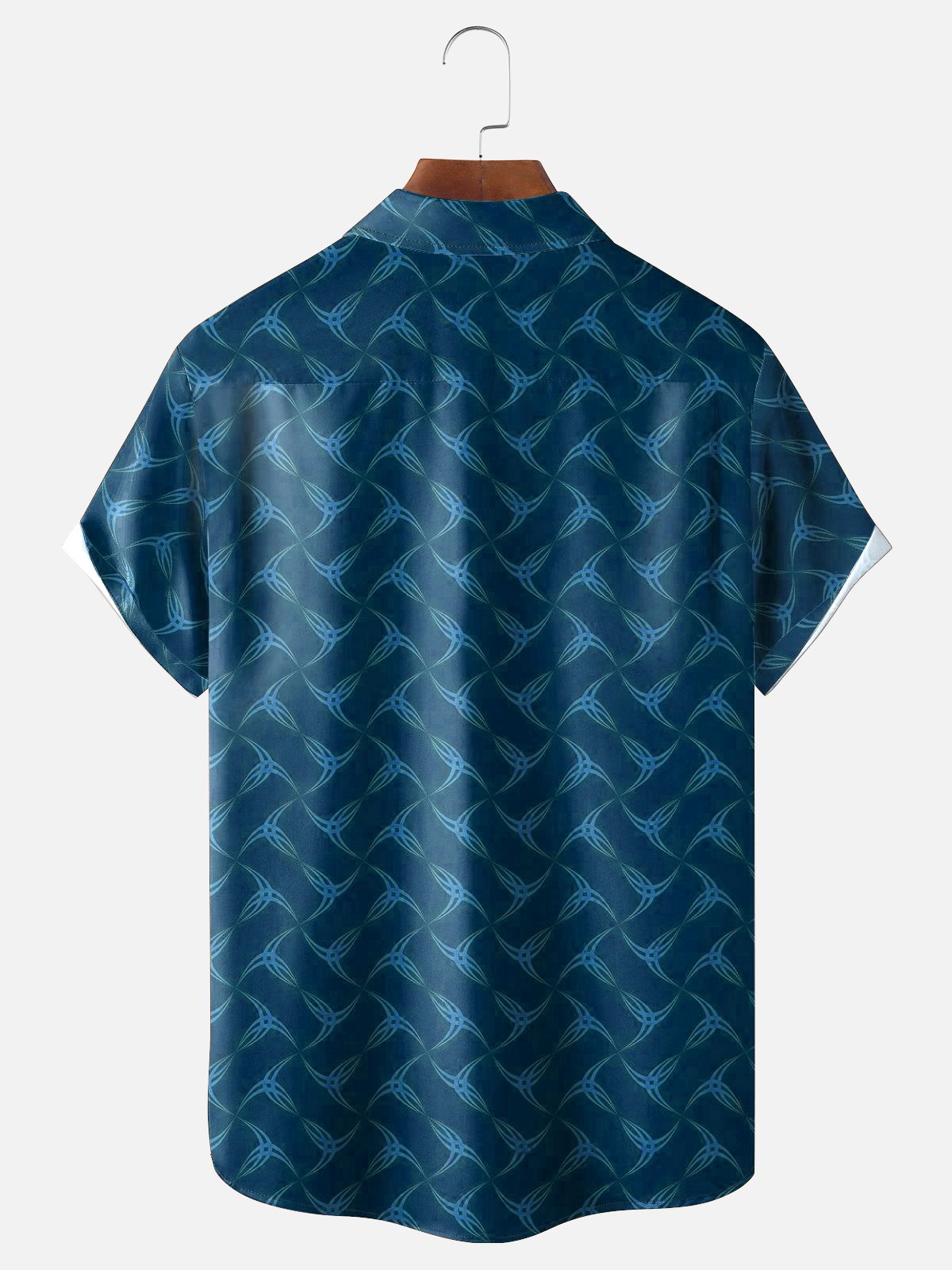 Alohadaddy Retro Geometric 3D Digital Print Men's Button Pocket Short Sleeve Shirt Big & Tall