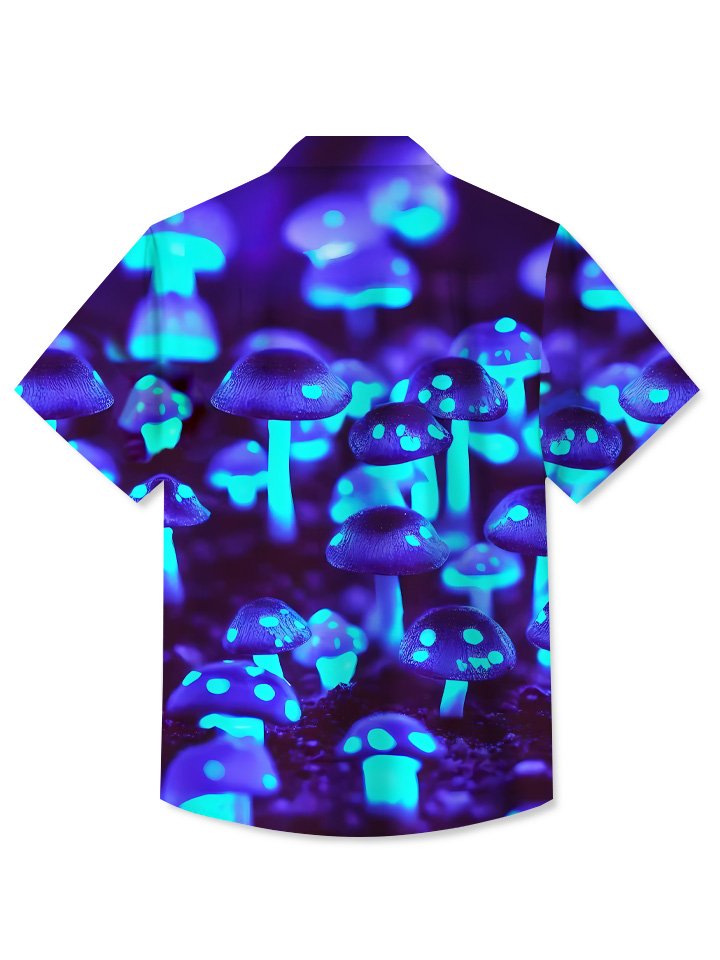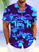 Alohadaddy Summer Plants Mushrooms 3D Three-Dimensional Fluorescent Color Beach Leisure Vacation Pocket Button Shirt