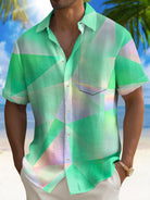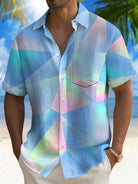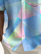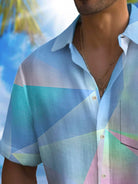 Alohadaddy Vintage Gradient Geometric Print Chest Pocket Men's High Shirt Big Tall