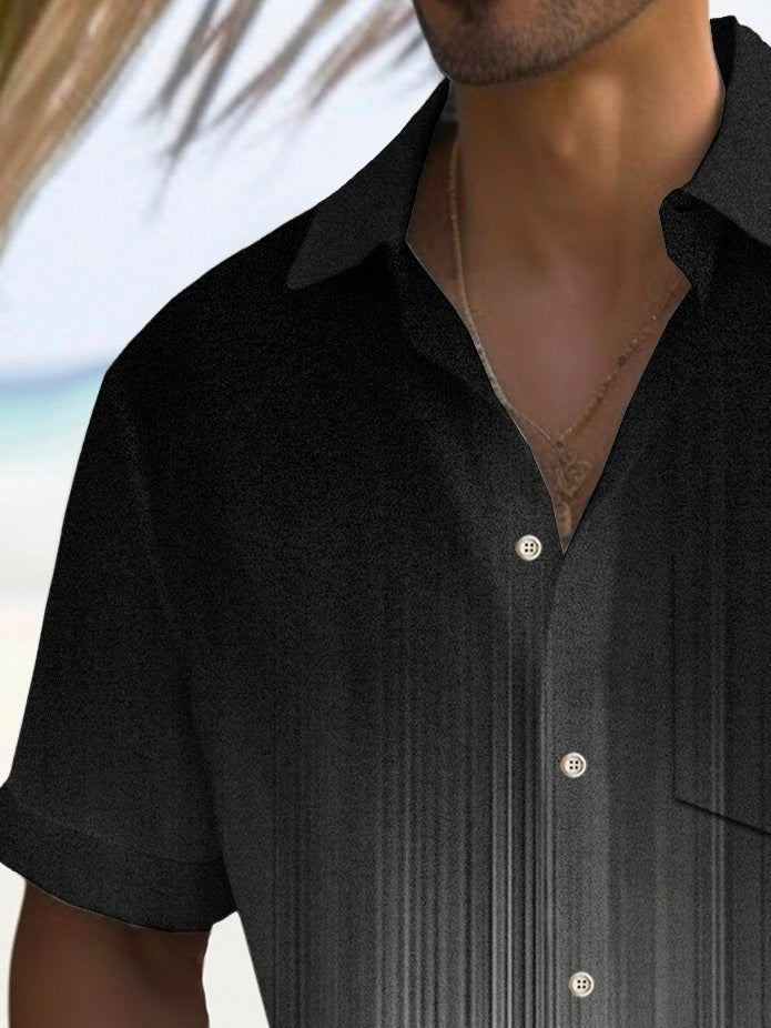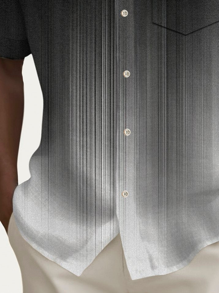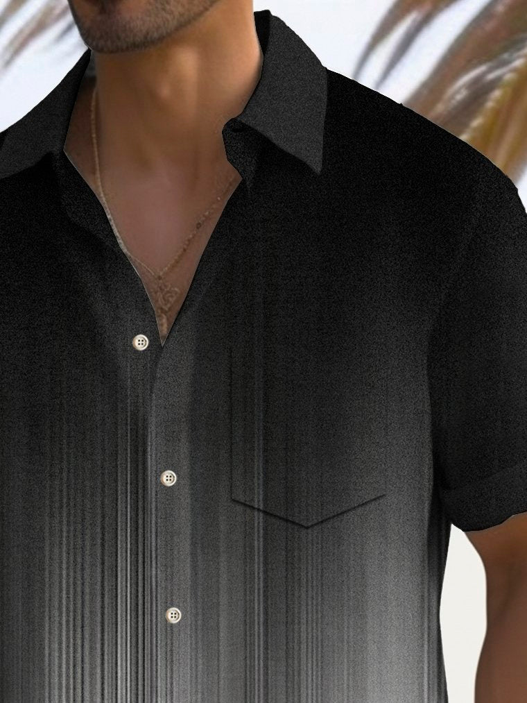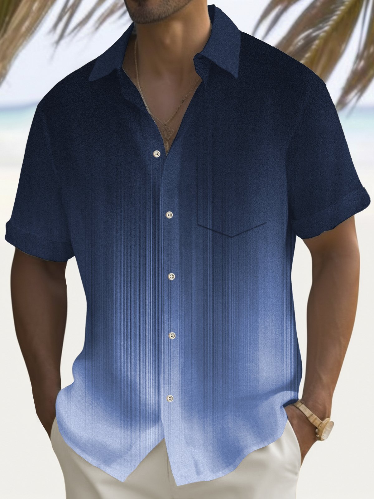 Alohadaddy Vintage Gradient Stripe Print Chest Pocket Men's Tall Shirt Big Tall