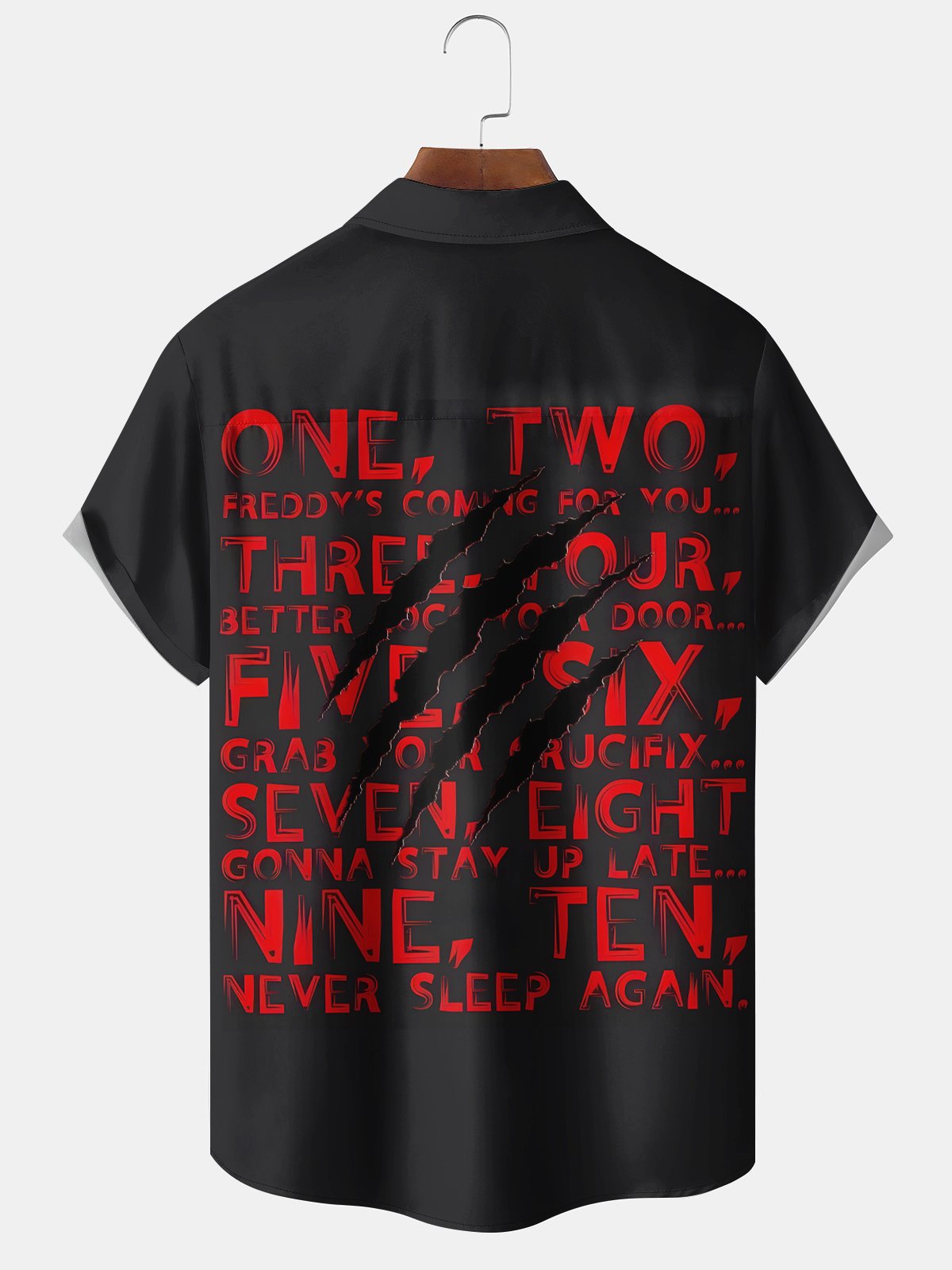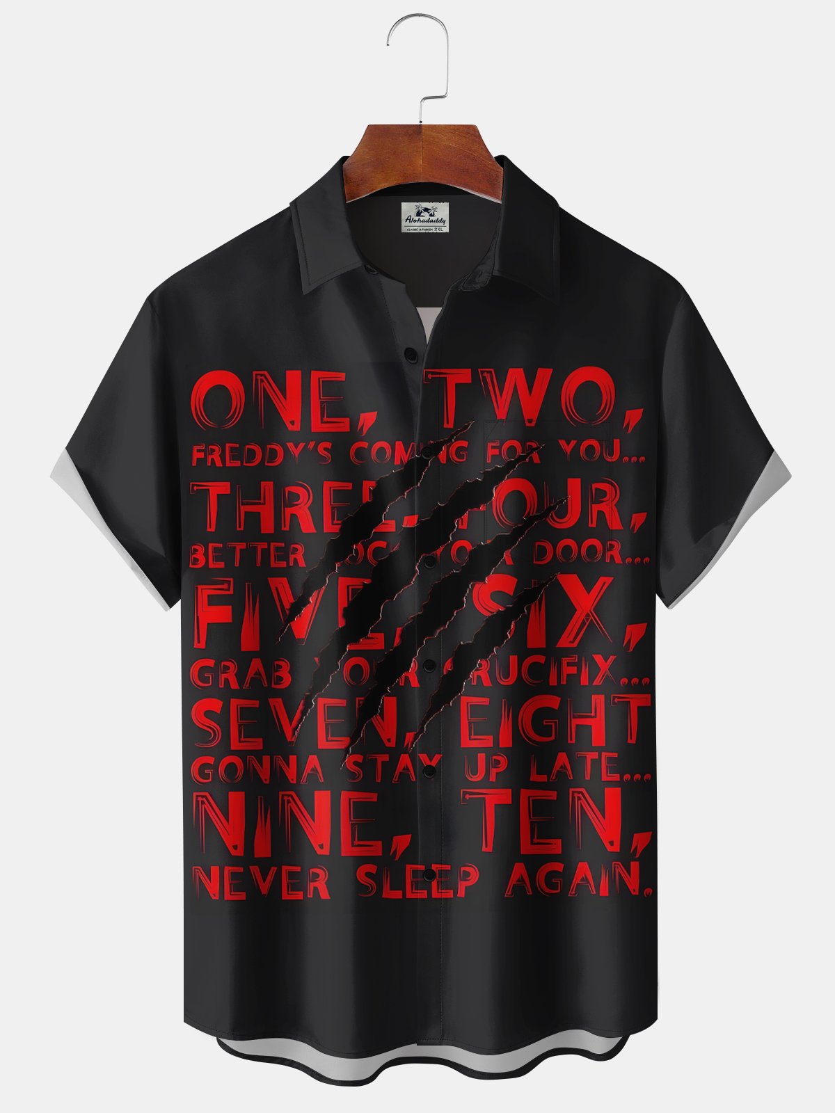 Alohadaddy® Halloween 70s Movie Ballad Blood Letter Stretch Pocket Shirt