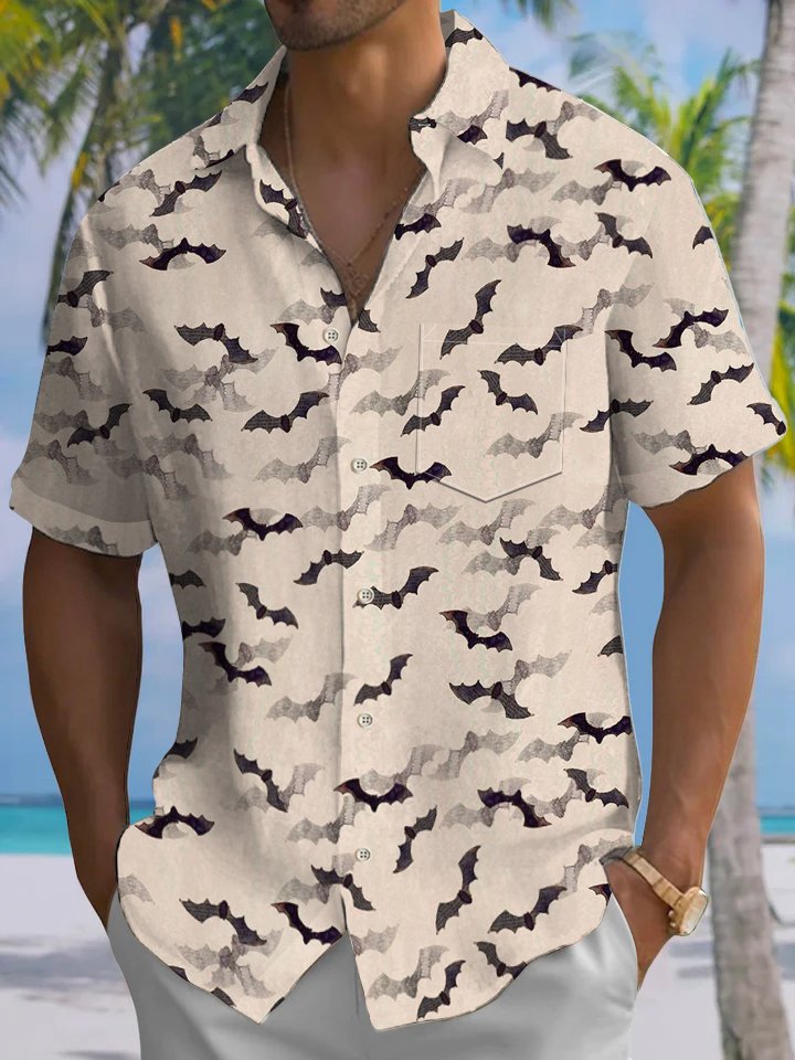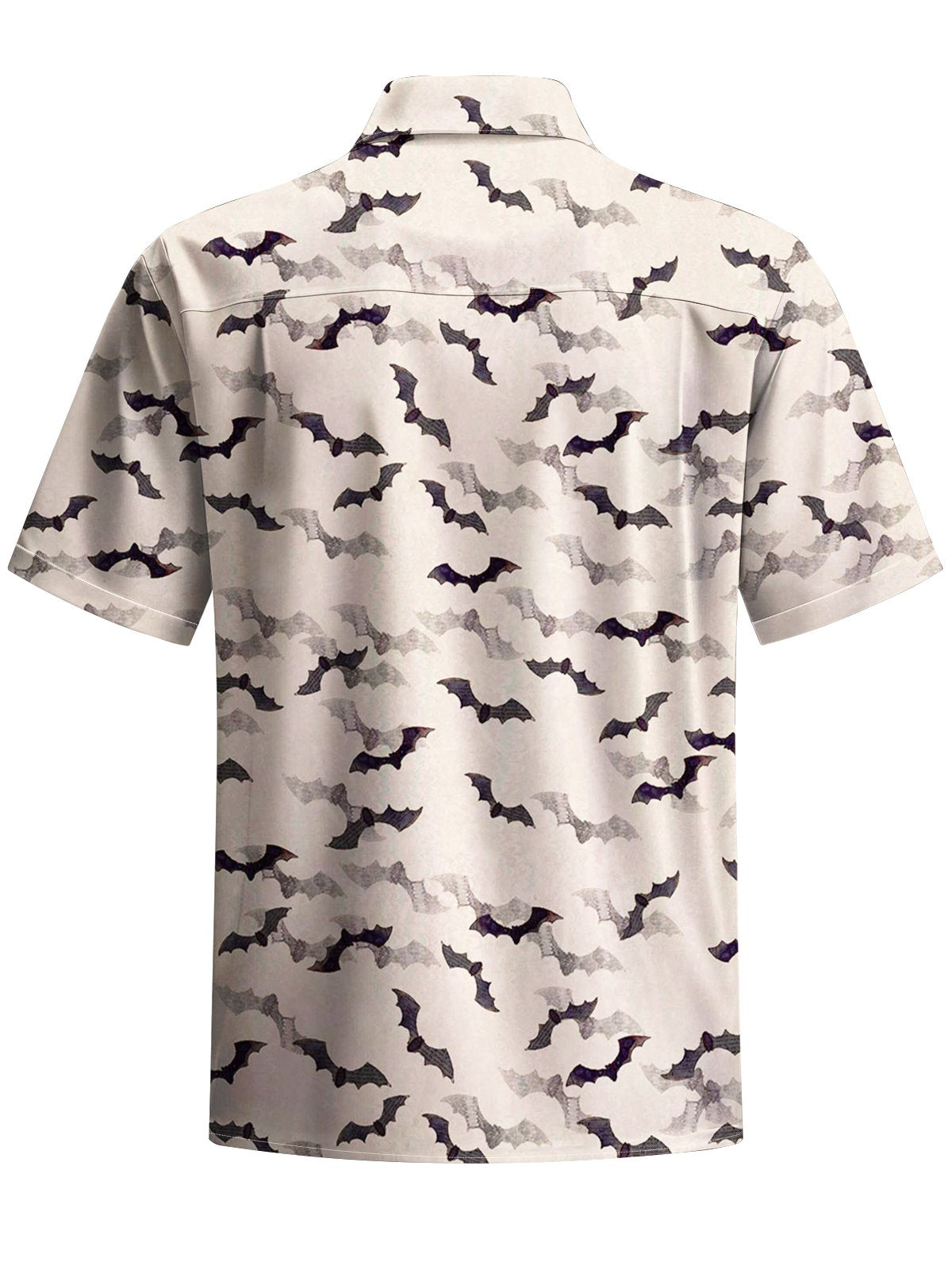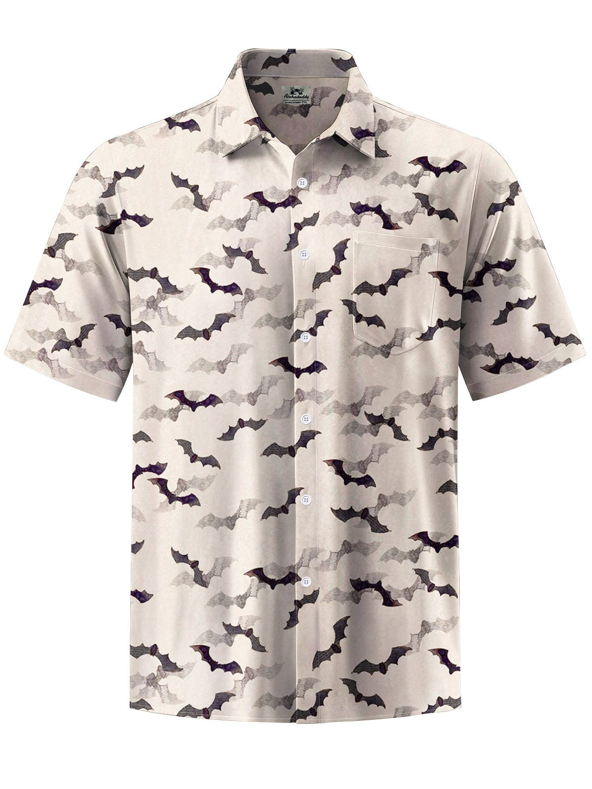 Alohadaddy® Halloween Bat Art Print Chest Pocket Men's Stretch Short Sleeve Shirt Big & Tall