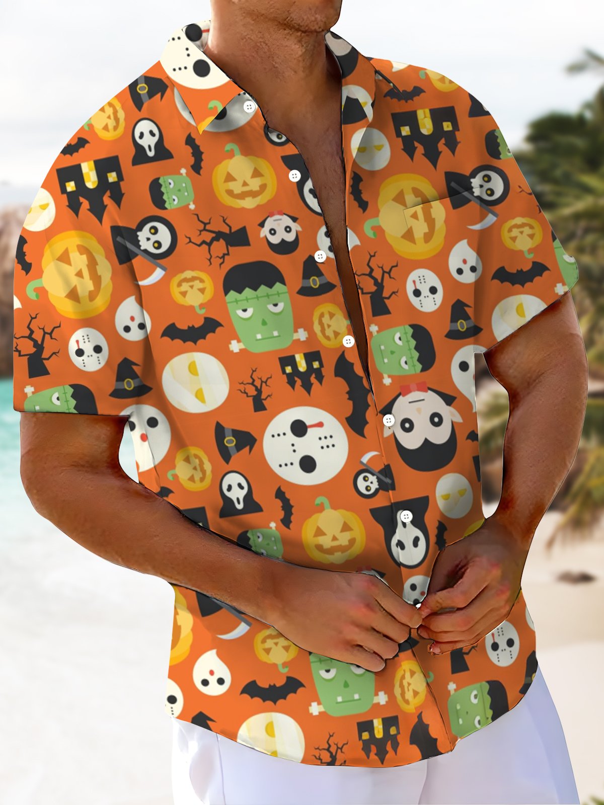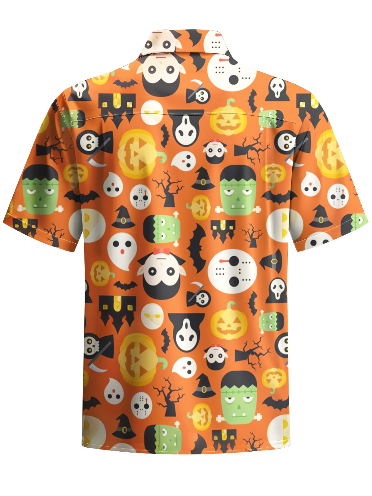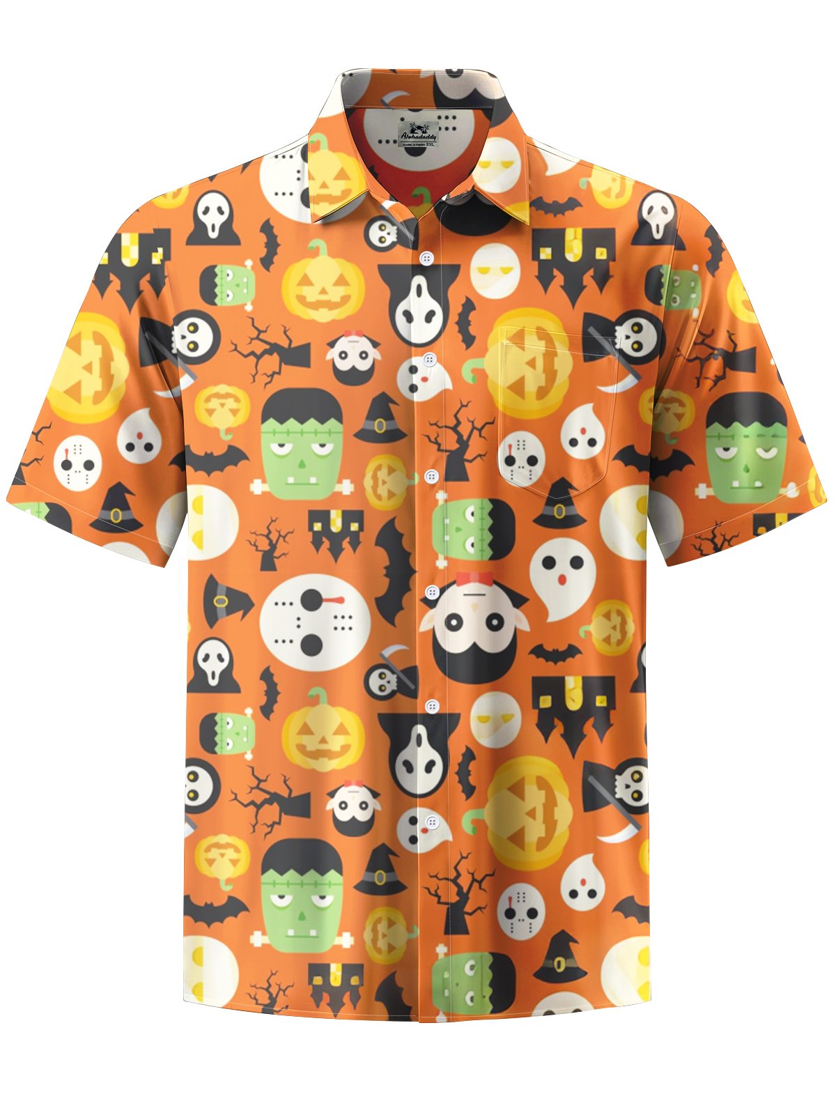 Alohadaddy® Halloween Cartoon Art Print Chest Pocket Stretch Men's Short Sleeve Shirt Big & Tall