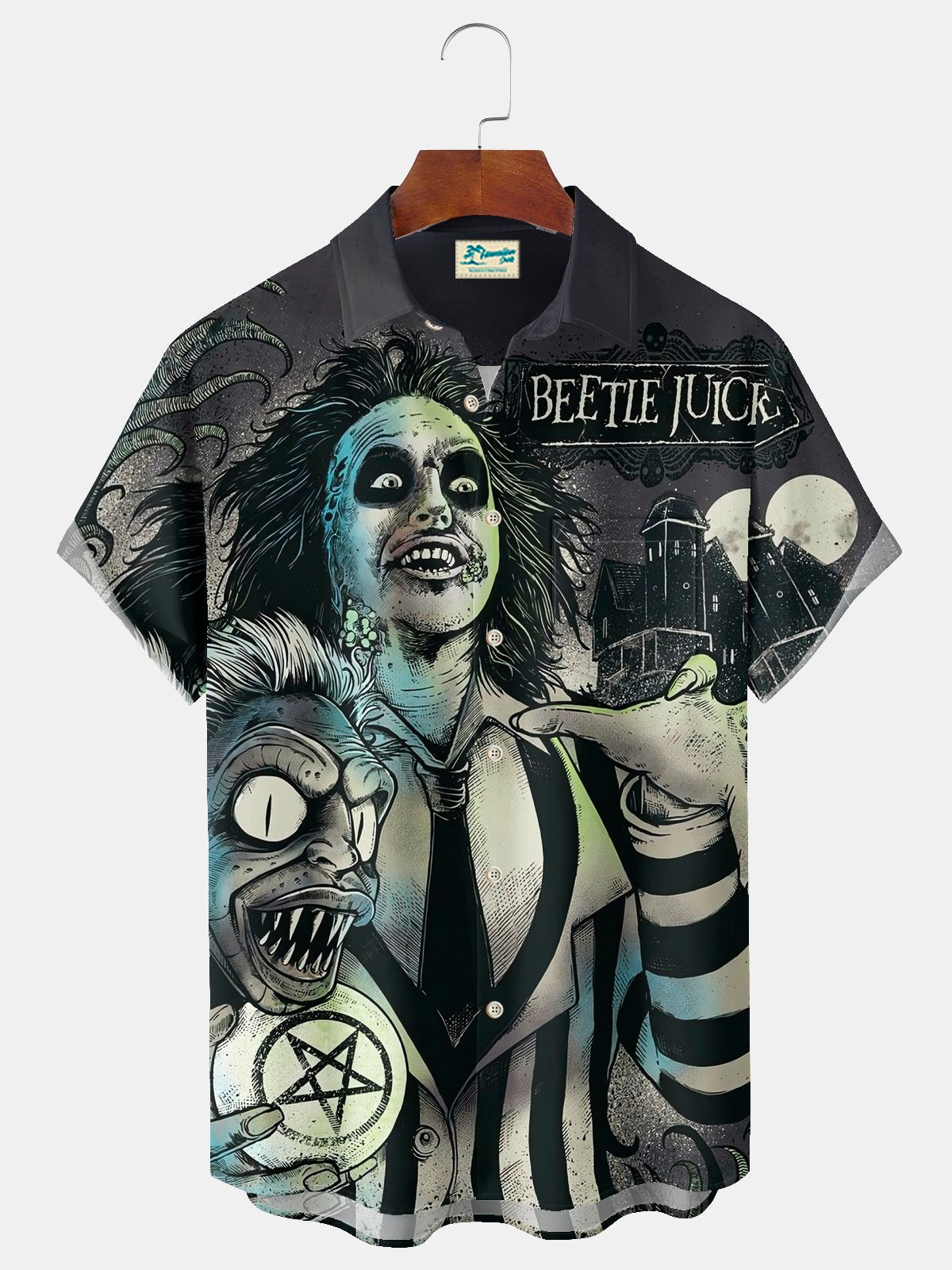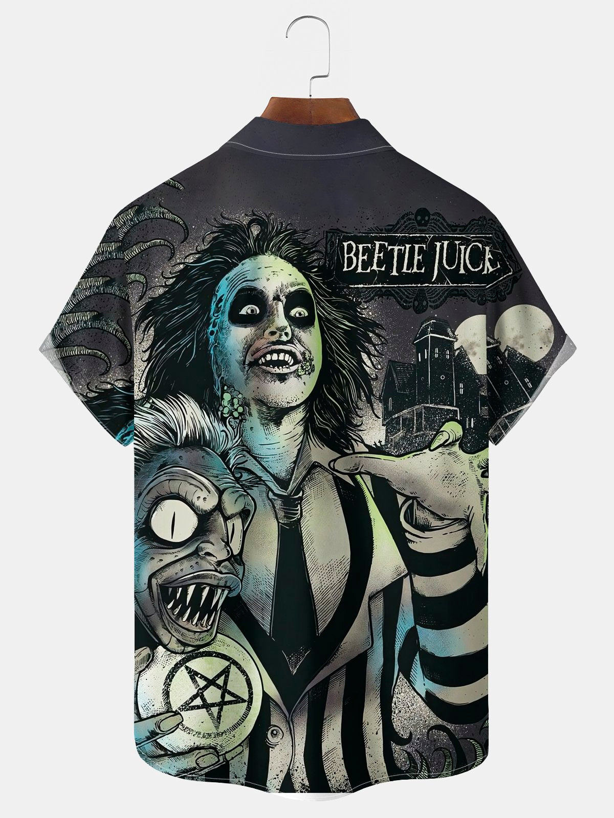 Alohadaddy® Halloween Monster Cartoon Print Casual Stylish Hawaiian Shirt Summer Shirts Pocket Short Sleeve Shirt Big Tall