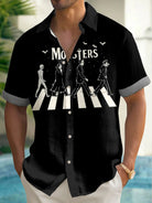 Alohadaddy® Halloween Monster Cartoon Print Casual Stylish Hawaiian Shirt Summer Shirts Pocket Short Sleeve Shirt Big Tall