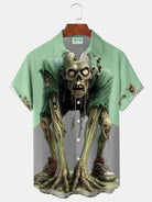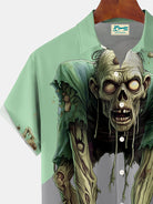 Alohadaddy® Halloween Plants vs. Zombies Dislocation Visual Print Men's Large Size Button Pocket Short Sleeve Shirt Big & Tall