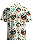 Alohadaddy® Halloween Pumpkin Cat Art Print Chest Pocket Stretch Men's Short Sleeve Shirt Big & Tall