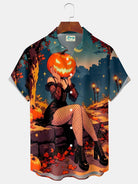 Alohadaddy® Halloween Pumpkin Girl Print Men's Button Pocket Short Sleeve Shirt Big & Tall