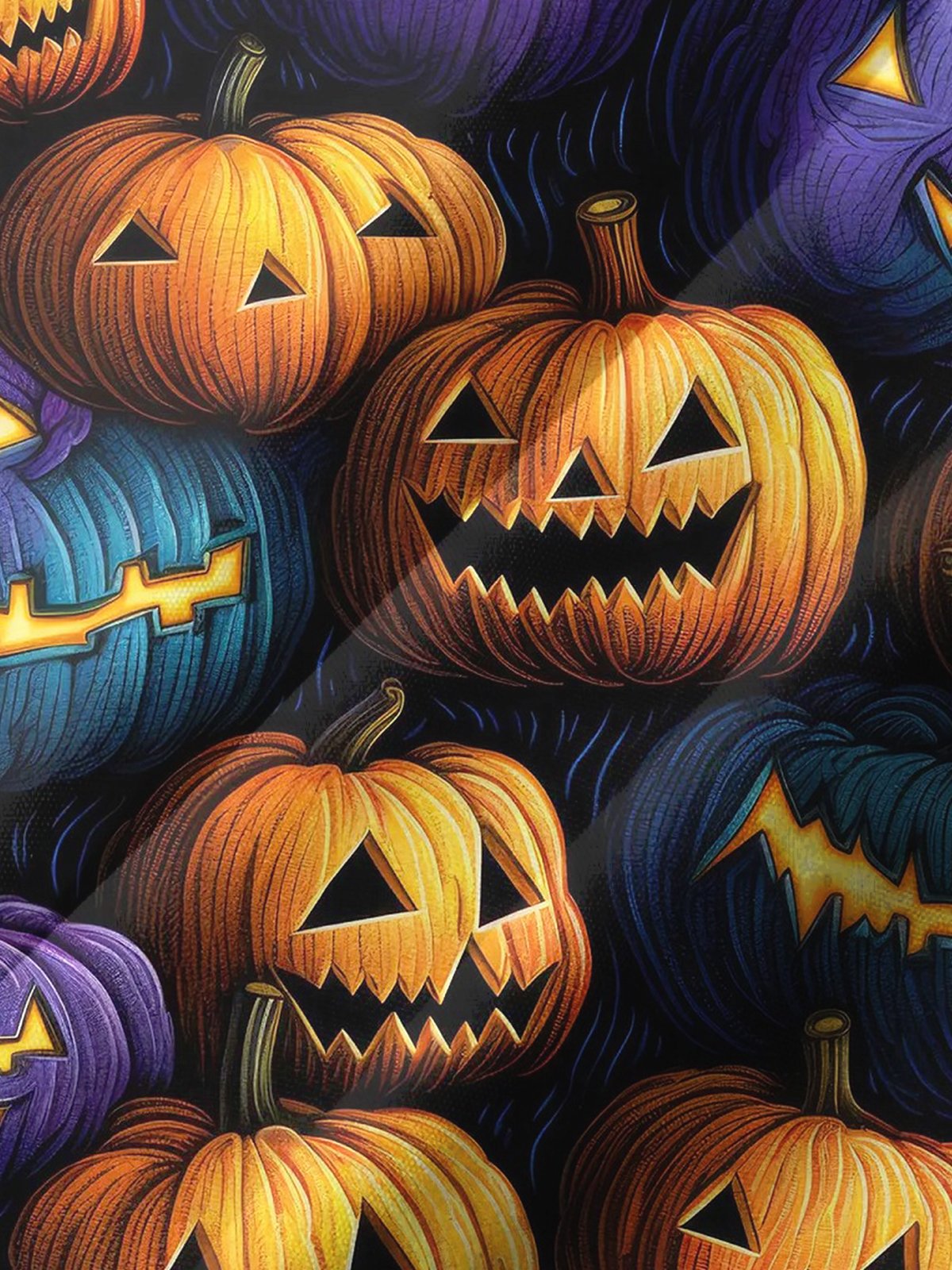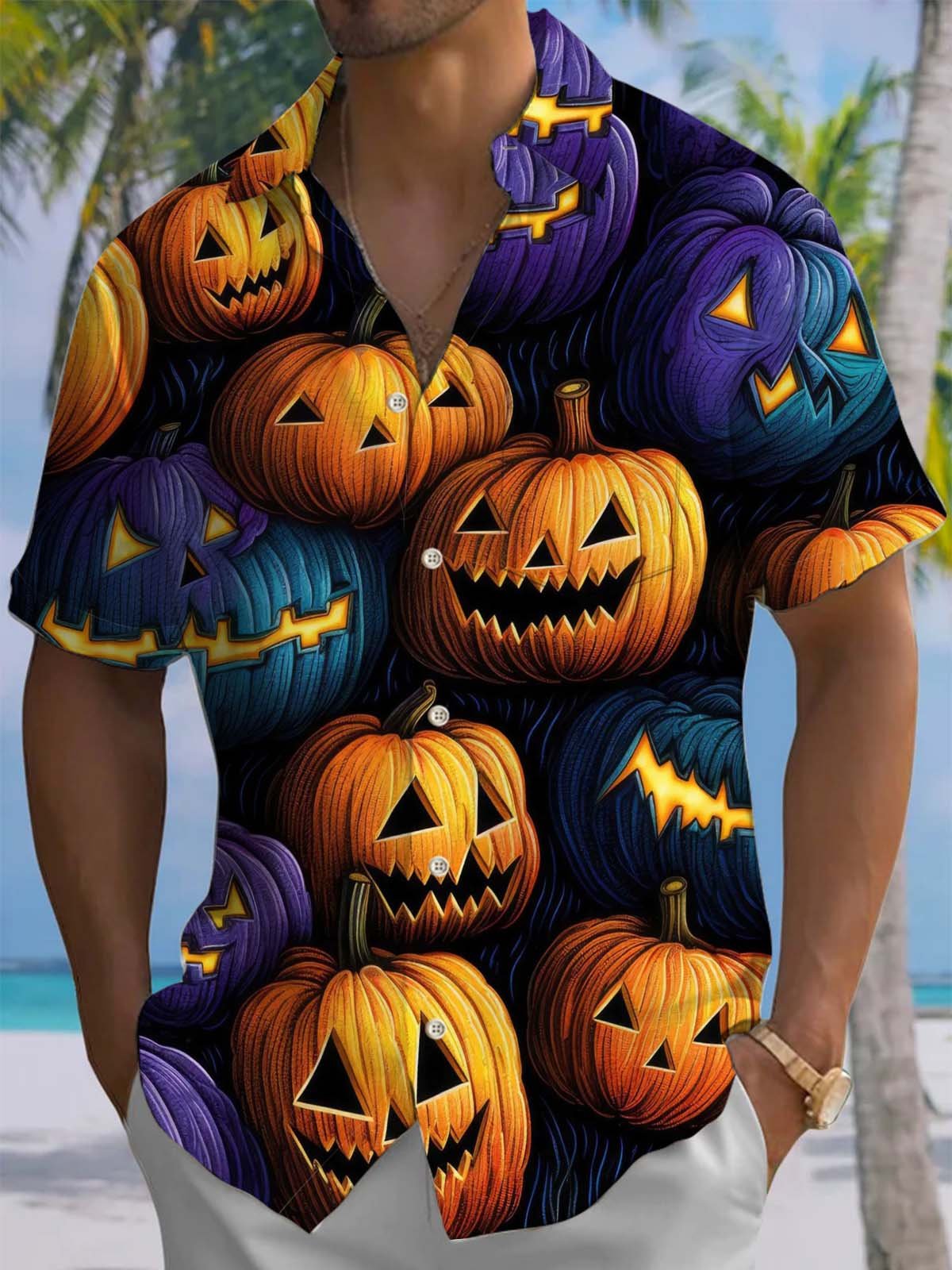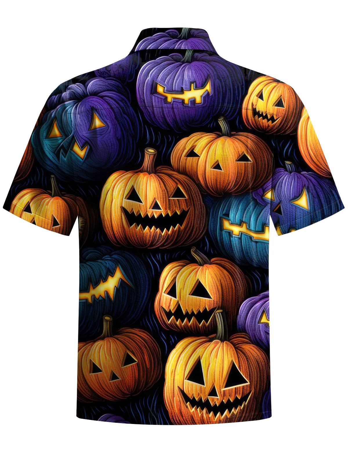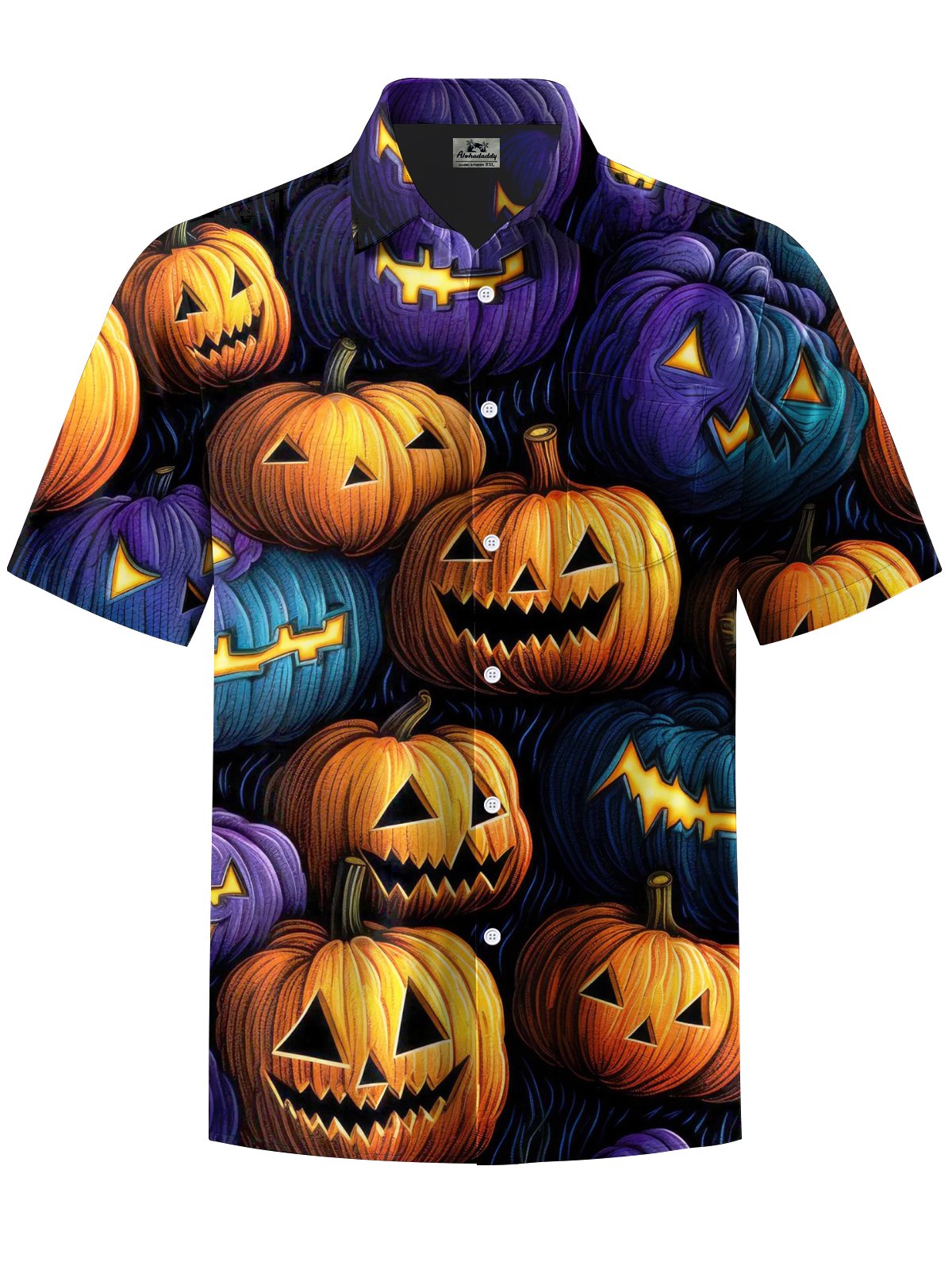 Alohadaddy® Halloween Pumpkin Monster Print Art Pocket Stretch Men's Short Sleeve Shirt Big & Tall